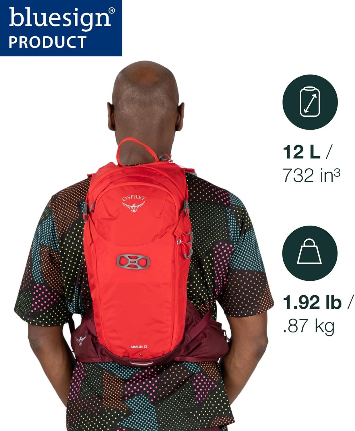 Osprey Siskin 12L Men’s Biking Backpack with Hydraulics Reservoir, Postal Blue(Ultimate Red)