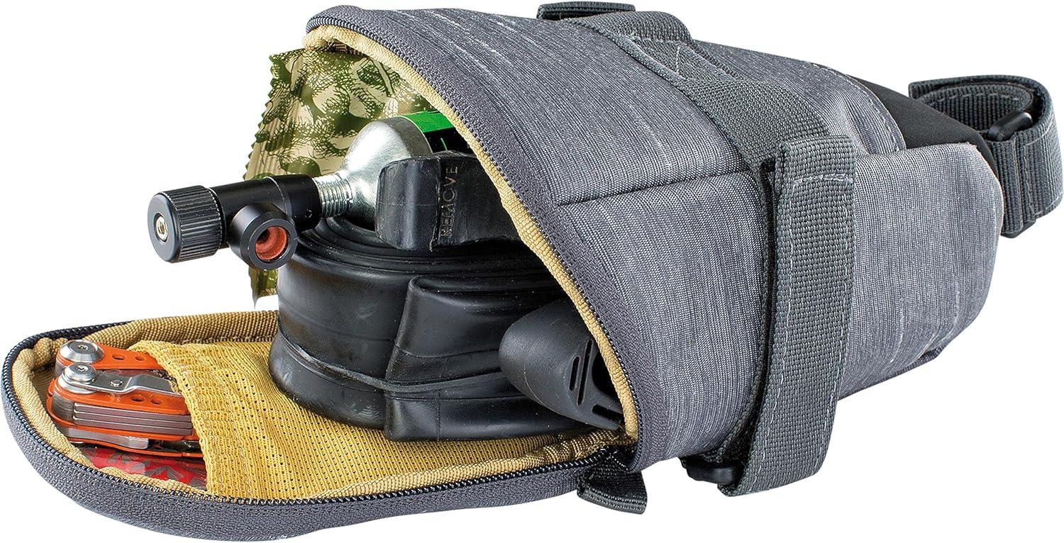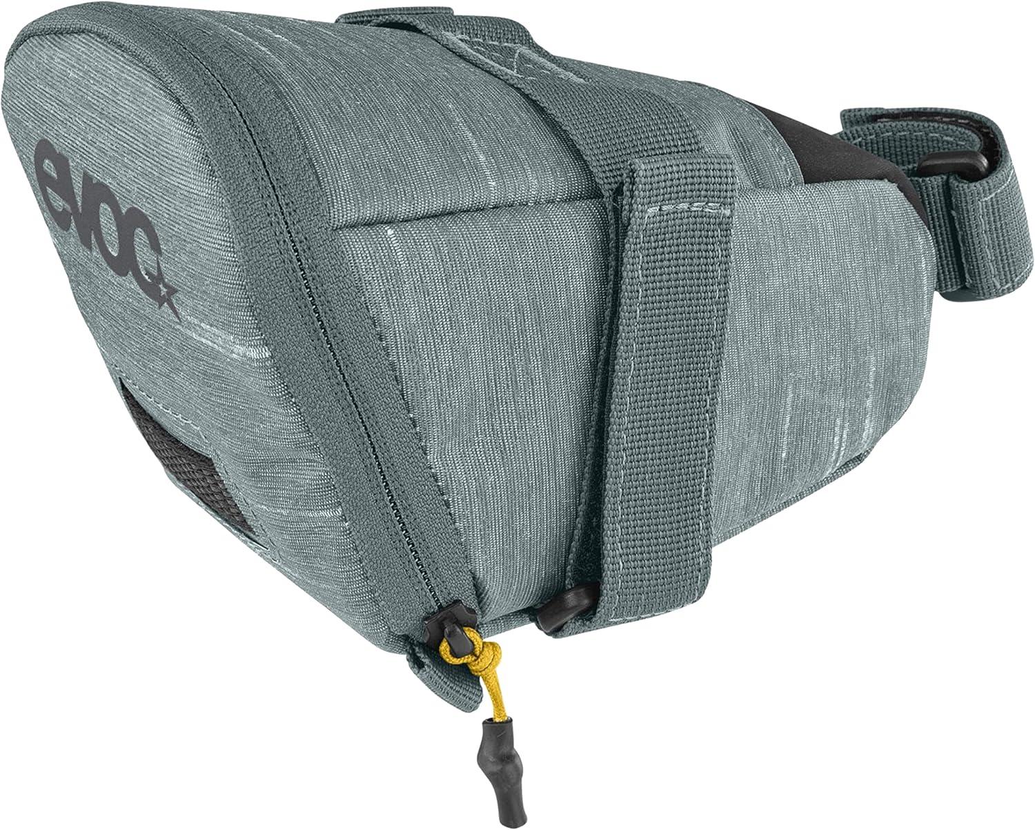 EVOC SEAT BAG TOUR saddle bag, Bicycle frame bag for more storage space on the seat post (size: M, 0.7 L storage space, abrasion-resistant, water-repellent, Hypalon reinforcement), Carbon Grey(Clay Yellow)
