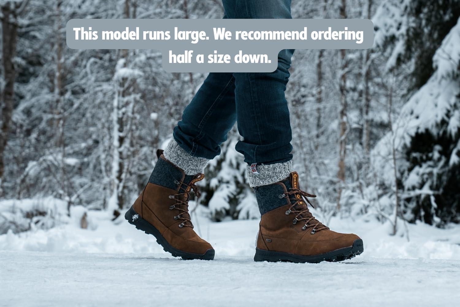 Icebug Mens Adak BUGrip Winter Hiking Boot with Carbide Studded Traction Sole(Coffee/Grey)