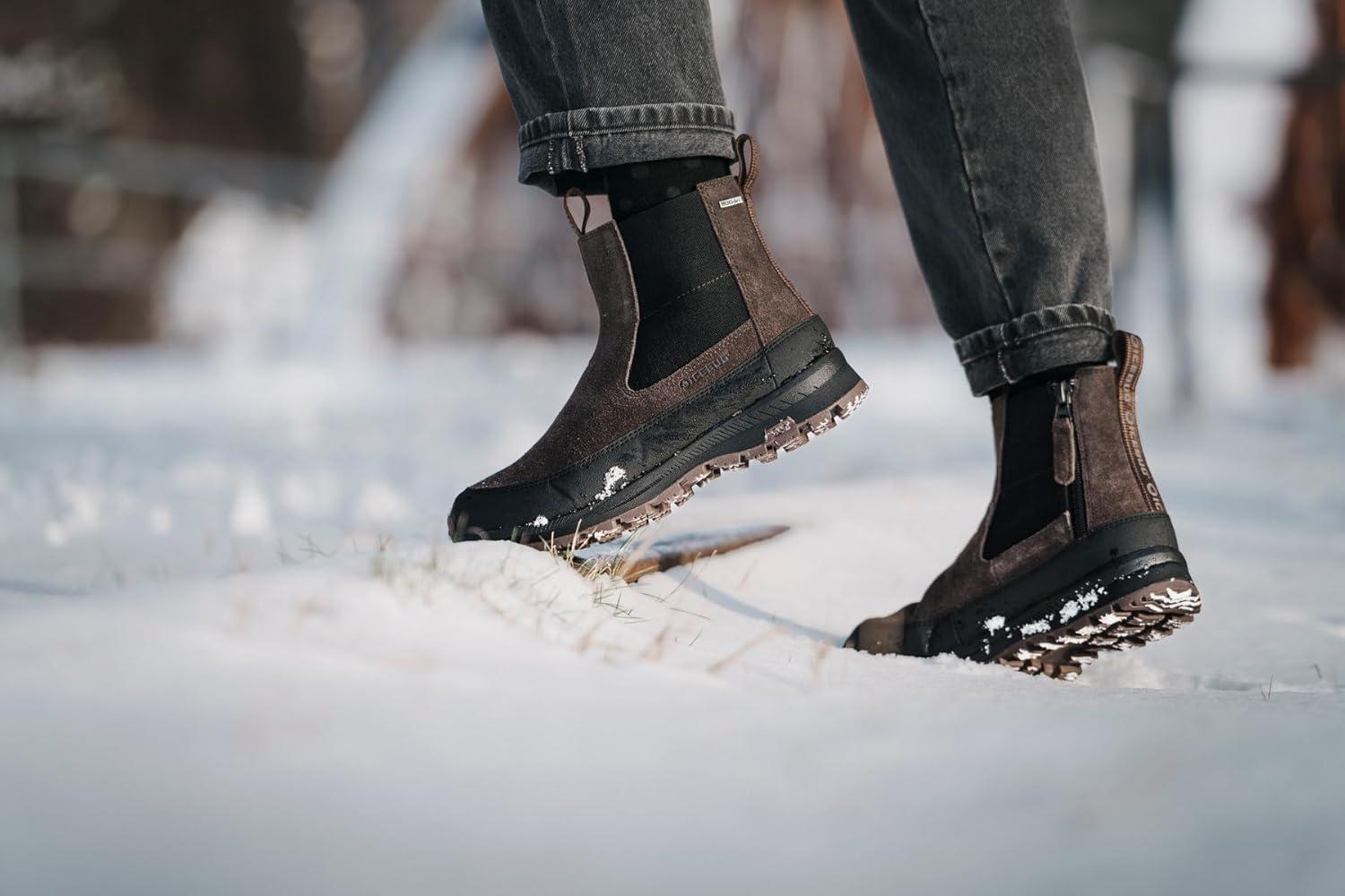 Kamik Champlain 3″ Men’s Waterproof Winter Boots Side Zipper Warm Insulated Suede Upper Non Slip Rubber Sole(Dark Brown)