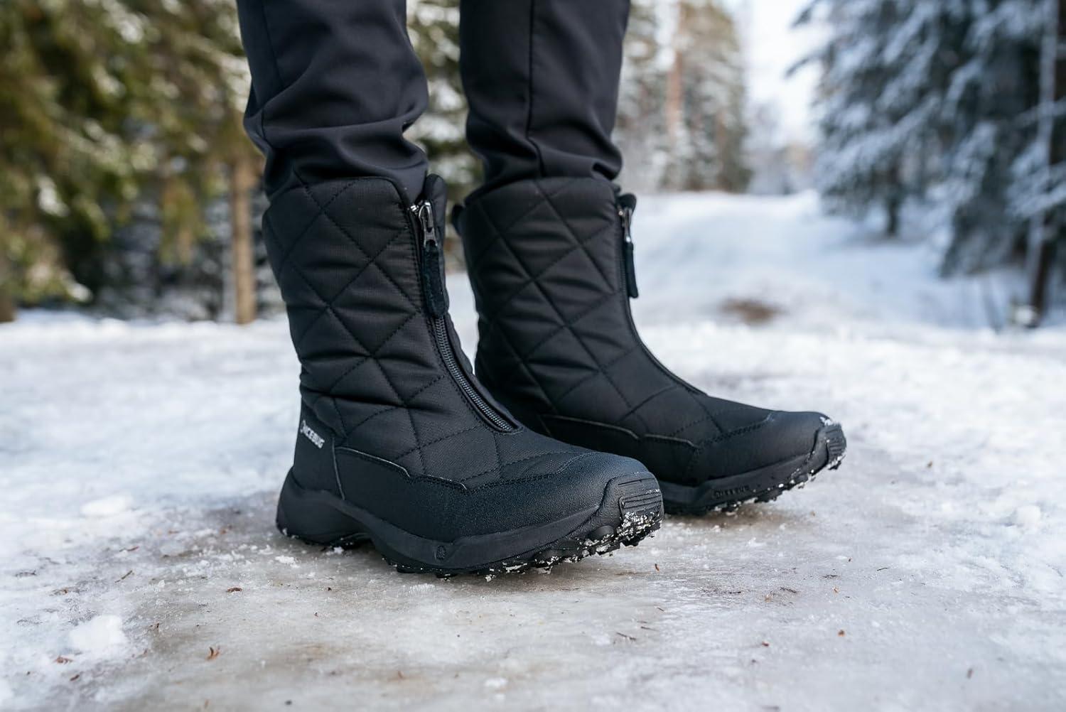 Kamik Champlain 3″ Men’s Waterproof Winter Boots Side Zipper Warm Insulated Suede Upper Non Slip Rubber Sole(Black)