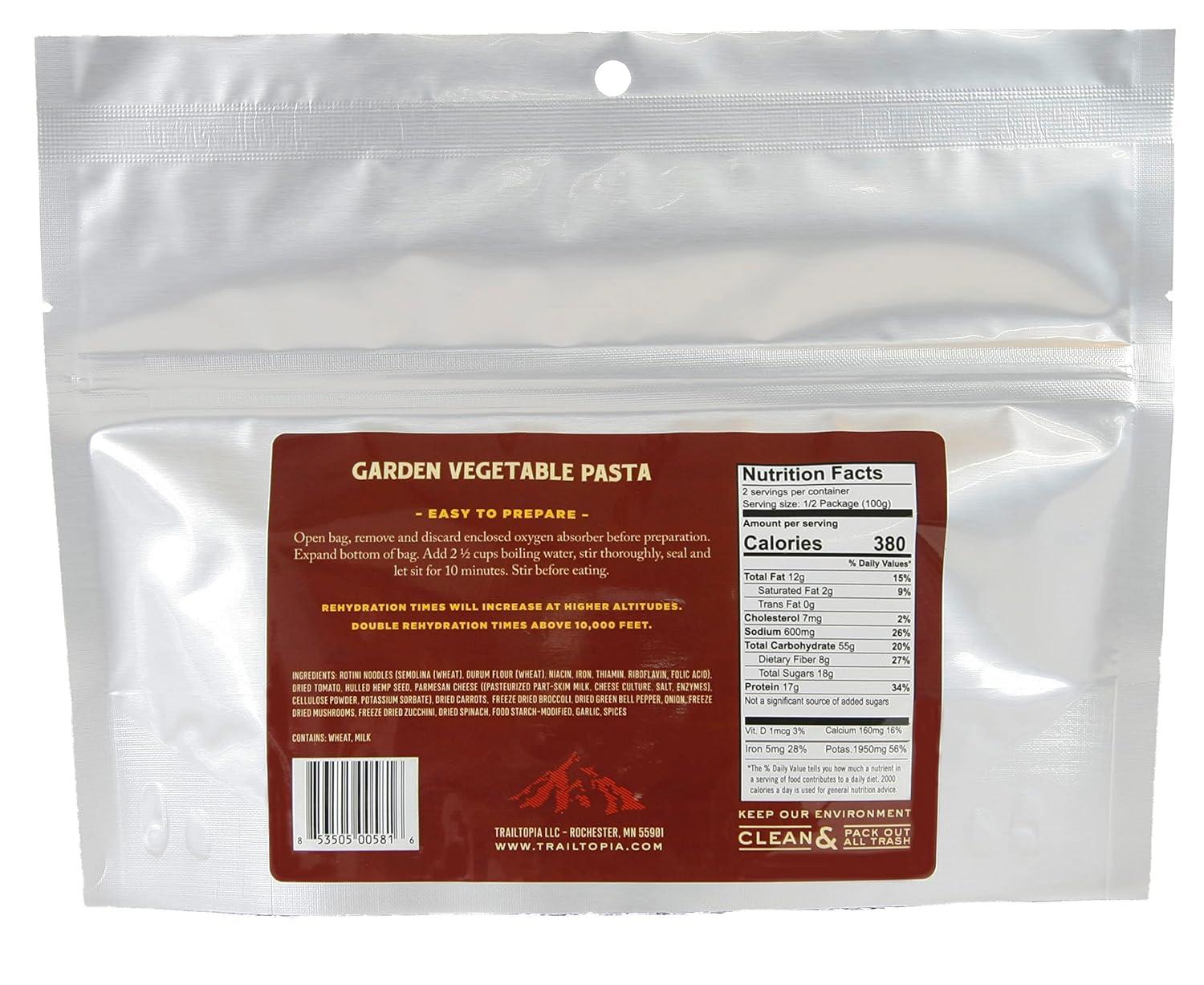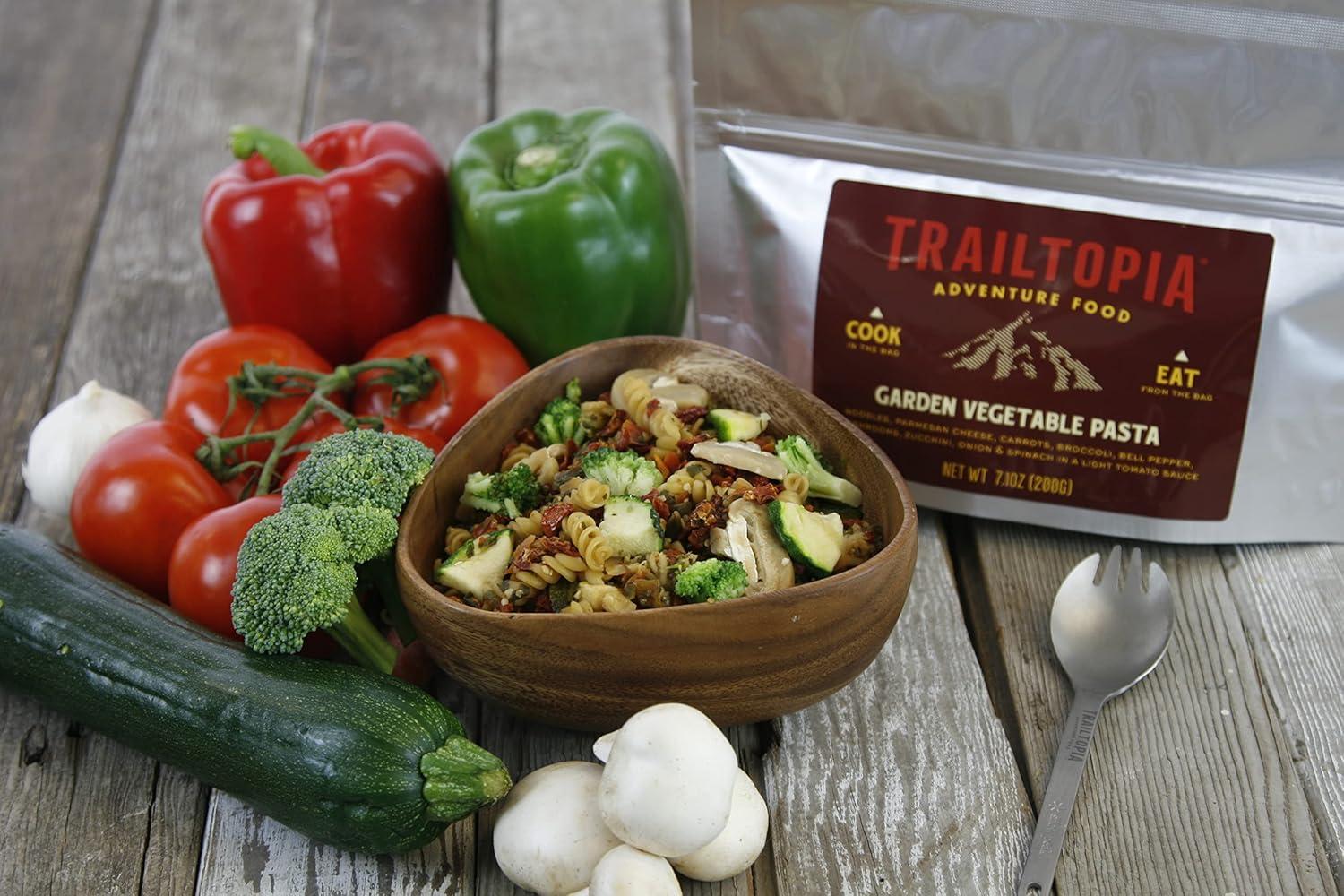 Trailtopia Chicken Stew with Noodles – Freeze Dried Hiking Dinner | Delicious Taste | Quick & Easy Prep | Lightweight | Perfect for Camping & Backpacking | High Energy Meals for Outdoor Adventures(Garden Vegetable Pasta)