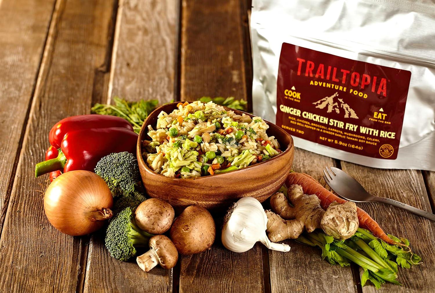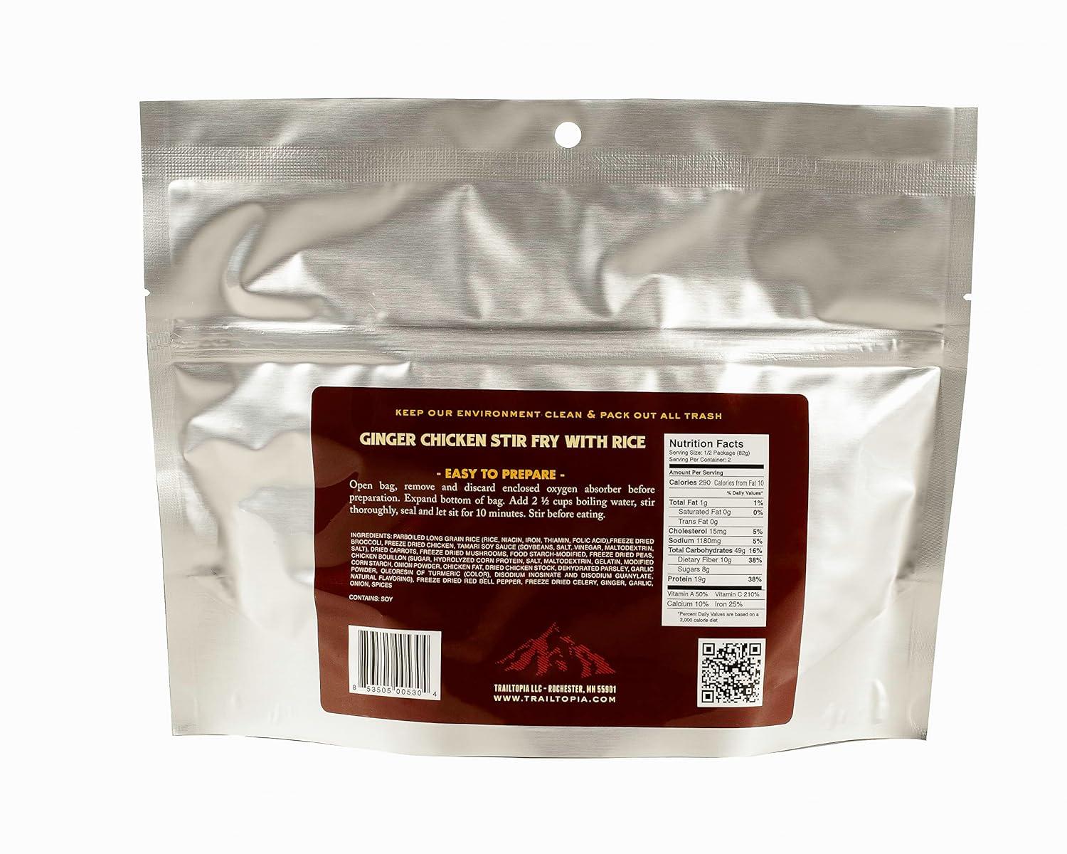 Trailtopia Chicken Stew with Noodles – Freeze Dried Hiking Dinner | Delicious Taste | Quick & Easy Prep | Lightweight | Perfect for Camping & Backpacking | High Energy Meals for Outdoor Adventures(Ginger Chicken Stir Fry)