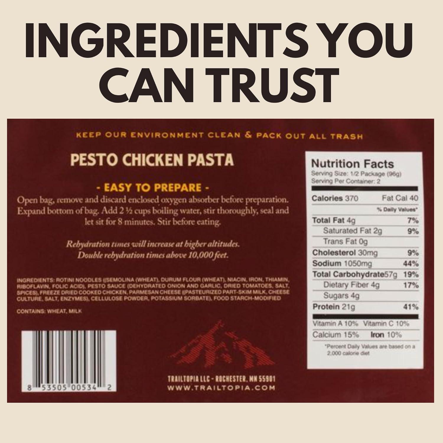 Trailtopia Chicken Stew with Noodles – Freeze Dried Hiking Dinner | Delicious Taste | Quick & Easy Prep | Lightweight | Perfect for Camping & Backpacking | High Energy Meals for Outdoor Adventures(Pesto Chicken Pasta)