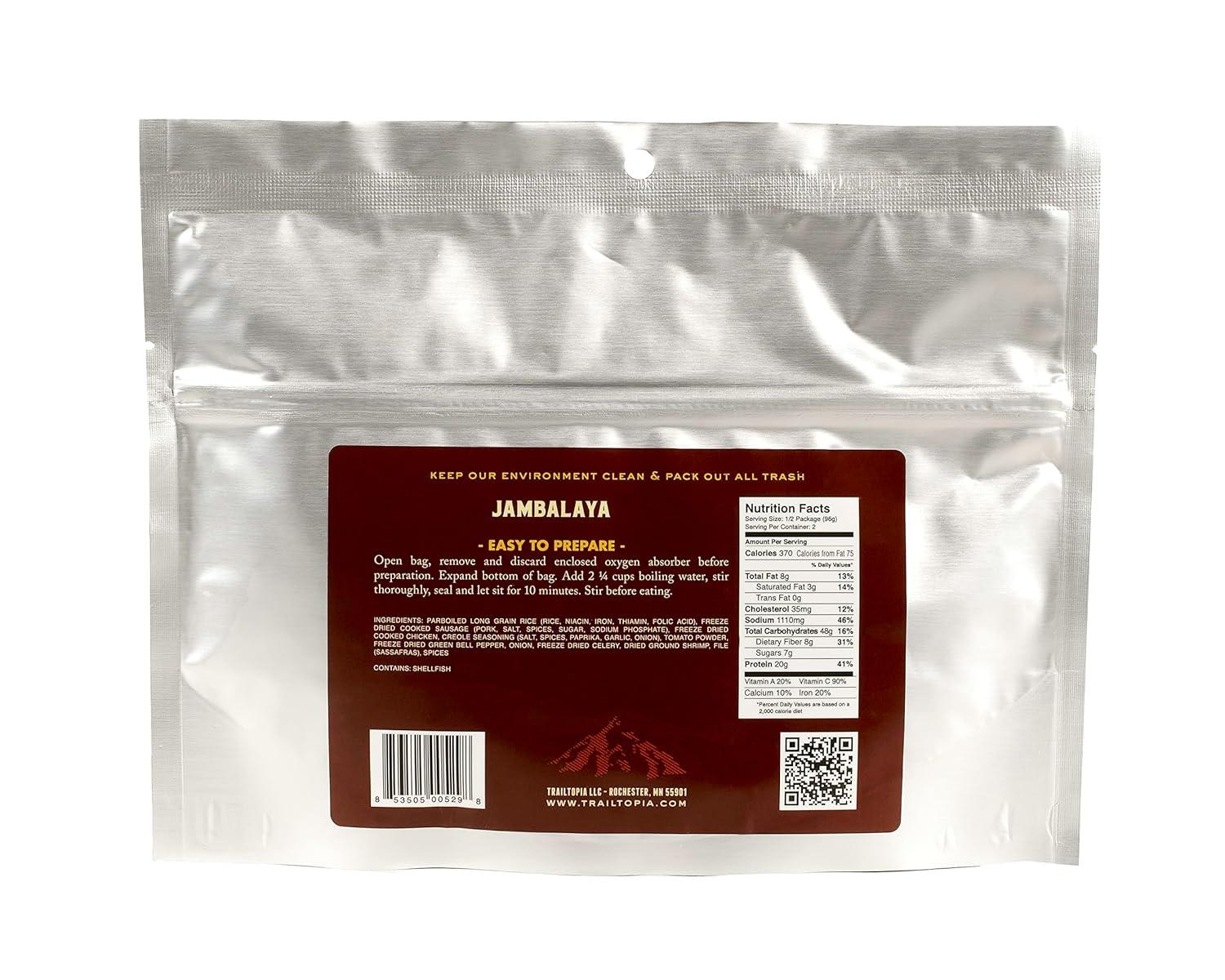 Trailtopia Chicken Stew with Noodles – Freeze Dried Hiking Dinner | Delicious Taste | Quick & Easy Prep | Lightweight | Perfect for Camping & Backpacking | High Energy Meals for Outdoor Adventures(Jambalaya)