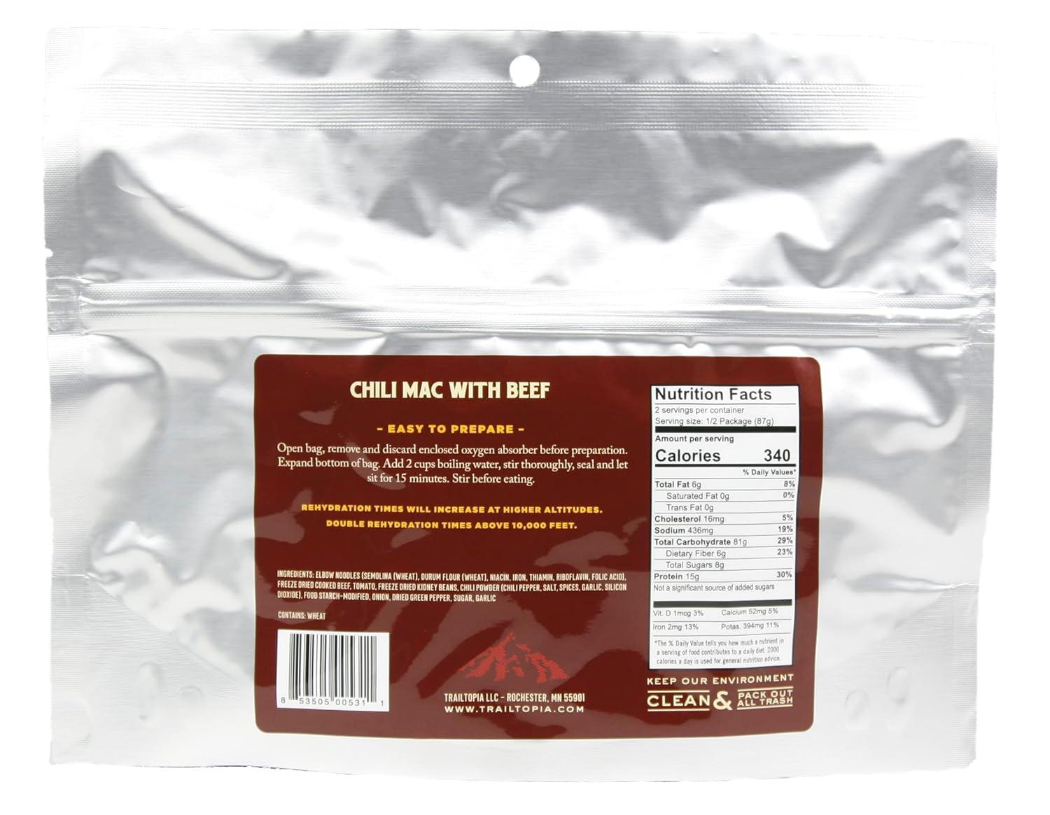 Trailtopia Chicken Stew with Noodles – Freeze Dried Hiking Dinner | Delicious Taste | Quick & Easy Prep | Lightweight | Perfect for Camping & Backpacking | High Energy Meals for Outdoor Adventures(Chili Mac With Beef)