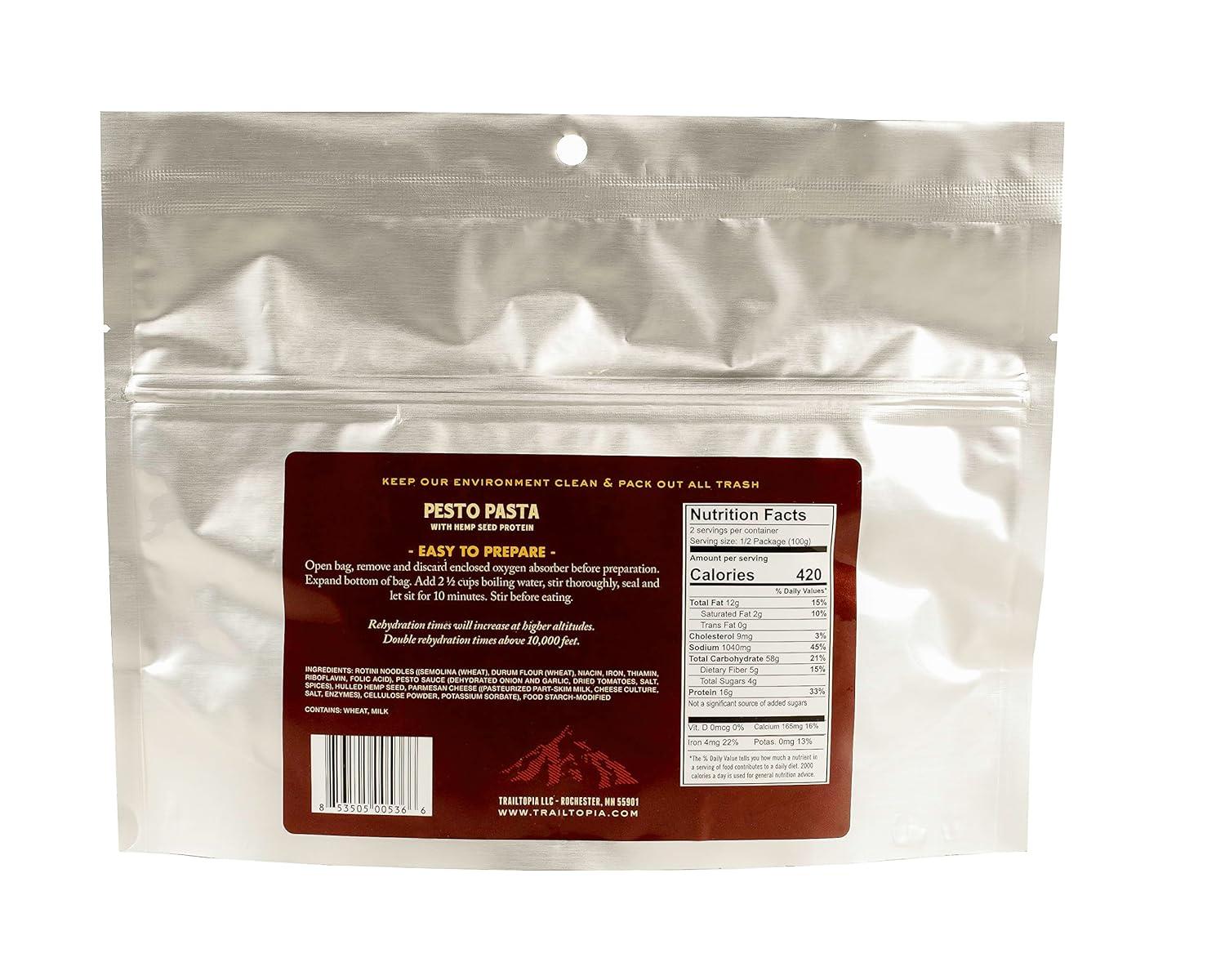 Trailtopia Chicken Stew with Noodles – Freeze Dried Hiking Dinner | Delicious Taste | Quick & Easy Prep | Lightweight | Perfect for Camping & Backpacking | High Energy Meals for Outdoor Adventures(Pesto Pasta)