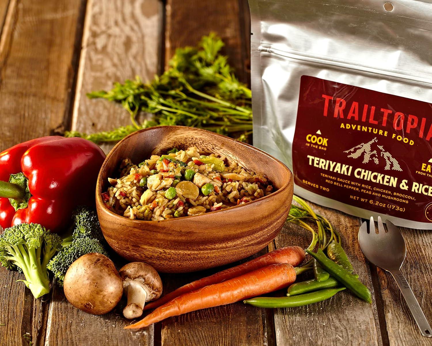 Trailtopia Chicken Stew with Noodles – Freeze Dried Hiking Dinner | Delicious Taste | Quick & Easy Prep | Lightweight | Perfect for Camping & Backpacking | High Energy Meals for Outdoor Adventures(Teriyaki Chicken & Rice)