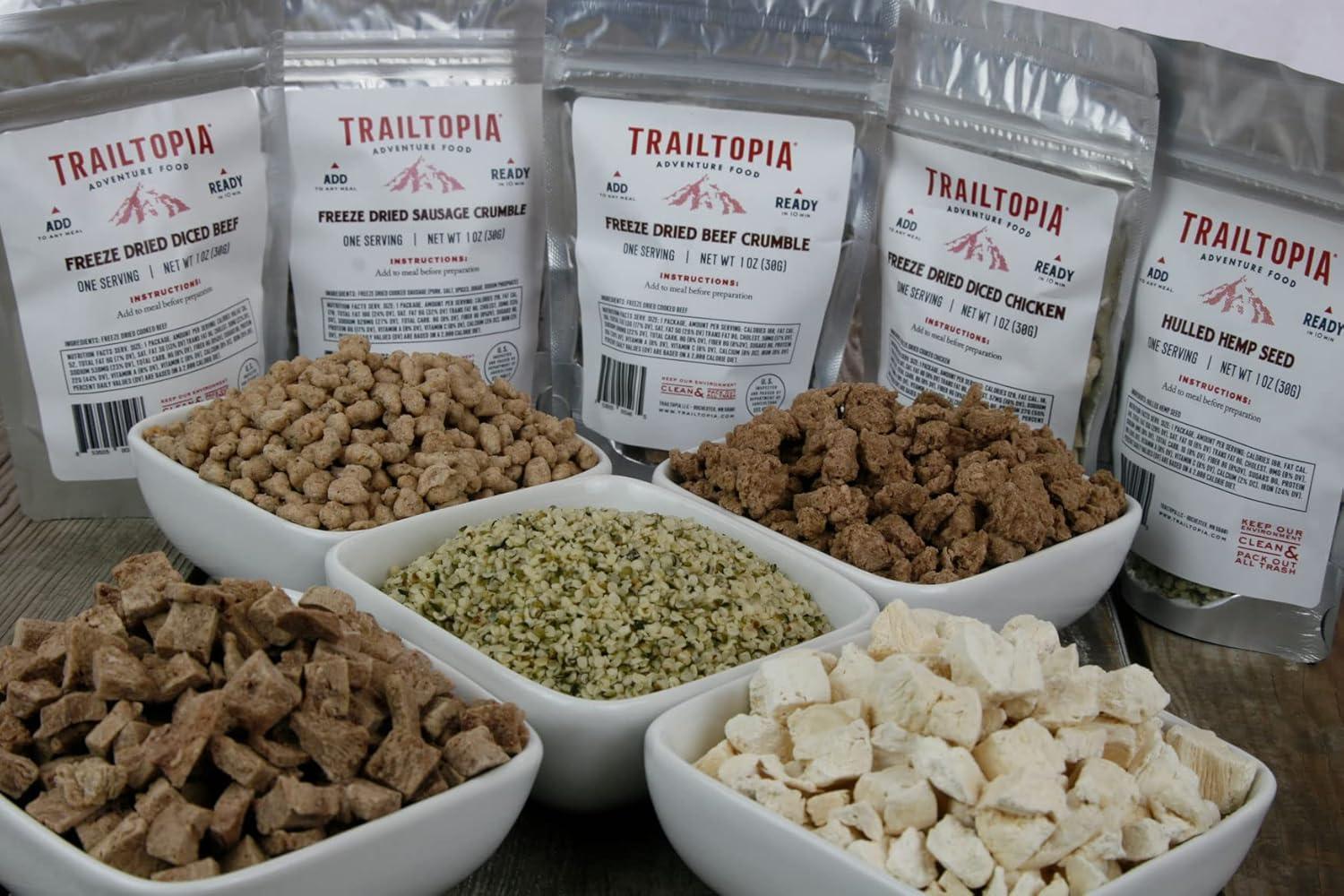 Trailtopia Hulled Hemp Seed Side Pack – Delicious Meal Add-On for Backpackers and Outdoor Enthusiasts | Nutritious, Protein-Packed, and Quick to Prepare Freeze Dried Meal(Beef Crumble)