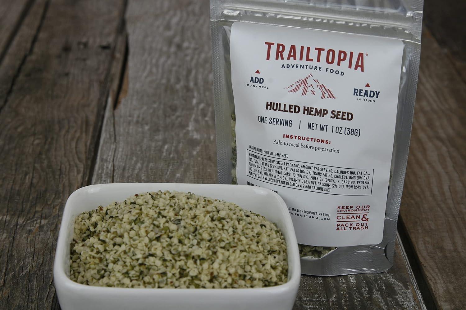 Trailtopia Hulled Hemp Seed Side Pack – Delicious Meal Add-On for Backpackers and Outdoor Enthusiasts | Nutritious, Protein-Packed, and Quick to Prepare Freeze Dried Meal(Hulled Hemp Seed)