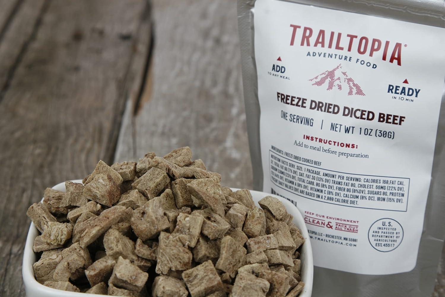 Trailtopia Hulled Hemp Seed Side Pack – Delicious Meal Add-On for Backpackers and Outdoor Enthusiasts | Nutritious, Protein-Packed, and Quick to Prepare Freeze Dried Meal(Beef)