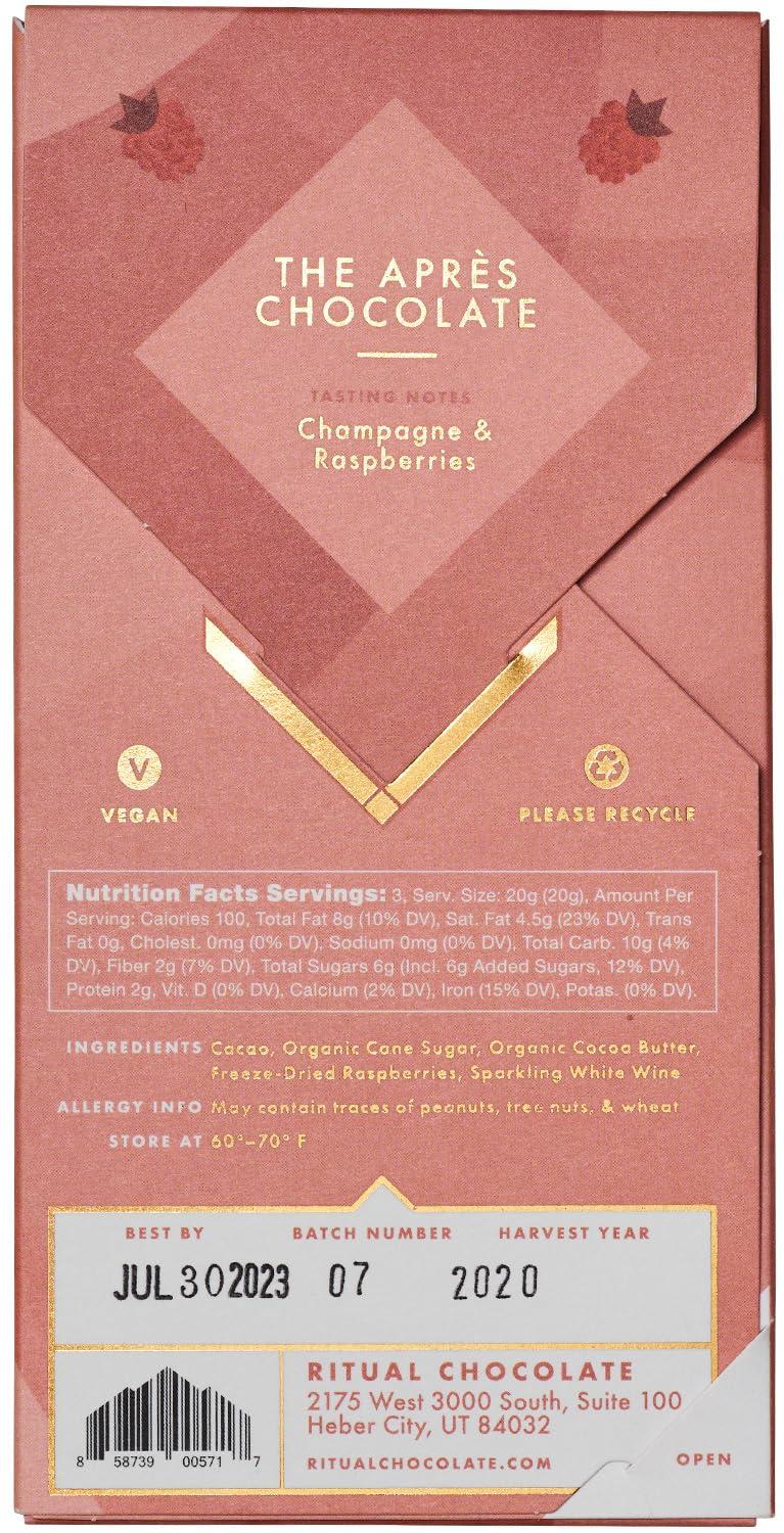 Ritual Dark Chocolate Bar, Fleur De Sel 70% Cacao, Notes of Strawberries, Fudge & Sea Salt, 2.12 oz(Apres 70%)