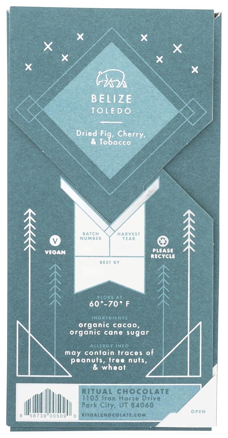Ritual Dark Chocolate Bar, Fleur De Sel 70% Cacao, Notes of Strawberries, Fudge & Sea Salt, 2.12 oz(Belize 75%)