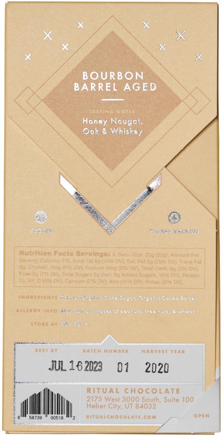 Ritual Dark Chocolate Bar, Fleur De Sel 70% Cacao, Notes of Strawberries, Fudge & Sea Salt, 2.12 oz(Bourbon Barrel Aged 75%)