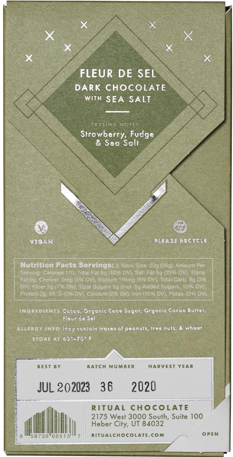 Ritual Dark Chocolate Bar, Fleur De Sel 70% Cacao, Notes of Strawberries, Fudge & Sea Salt, 2.12 oz(Fleur De Sel 70%)