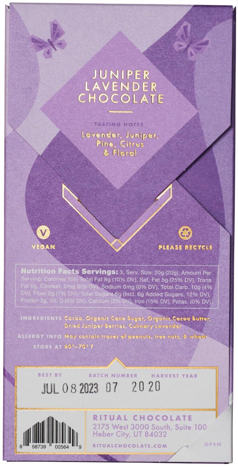Ritual Dark Chocolate Bar, Fleur De Sel 70% Cacao, Notes of Strawberries, Fudge & Sea Salt, 2.12 oz(Juniper Lavender 70%)