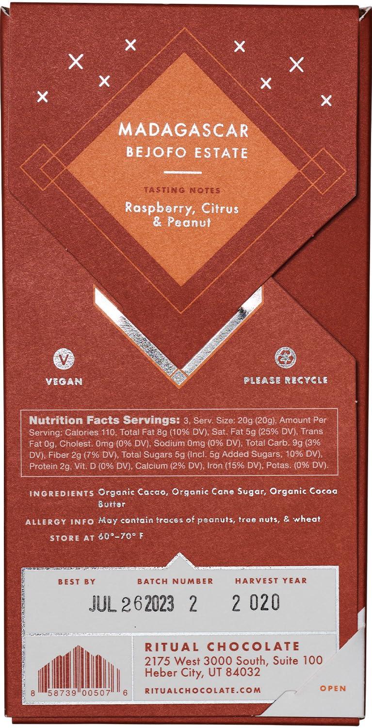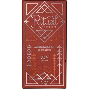 Ritual Dark Chocolate Bar, Fleur De Sel 70% Cacao, Notes of Strawberries, Fudge & Sea Salt, 2.12 oz(Madagascar 75%)