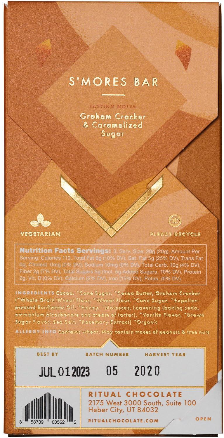 Ritual Dark Chocolate Bar, Fleur De Sel 70% Cacao, Notes of Strawberries, Fudge & Sea Salt, 2.12 oz(S’mores Bar 70%)
