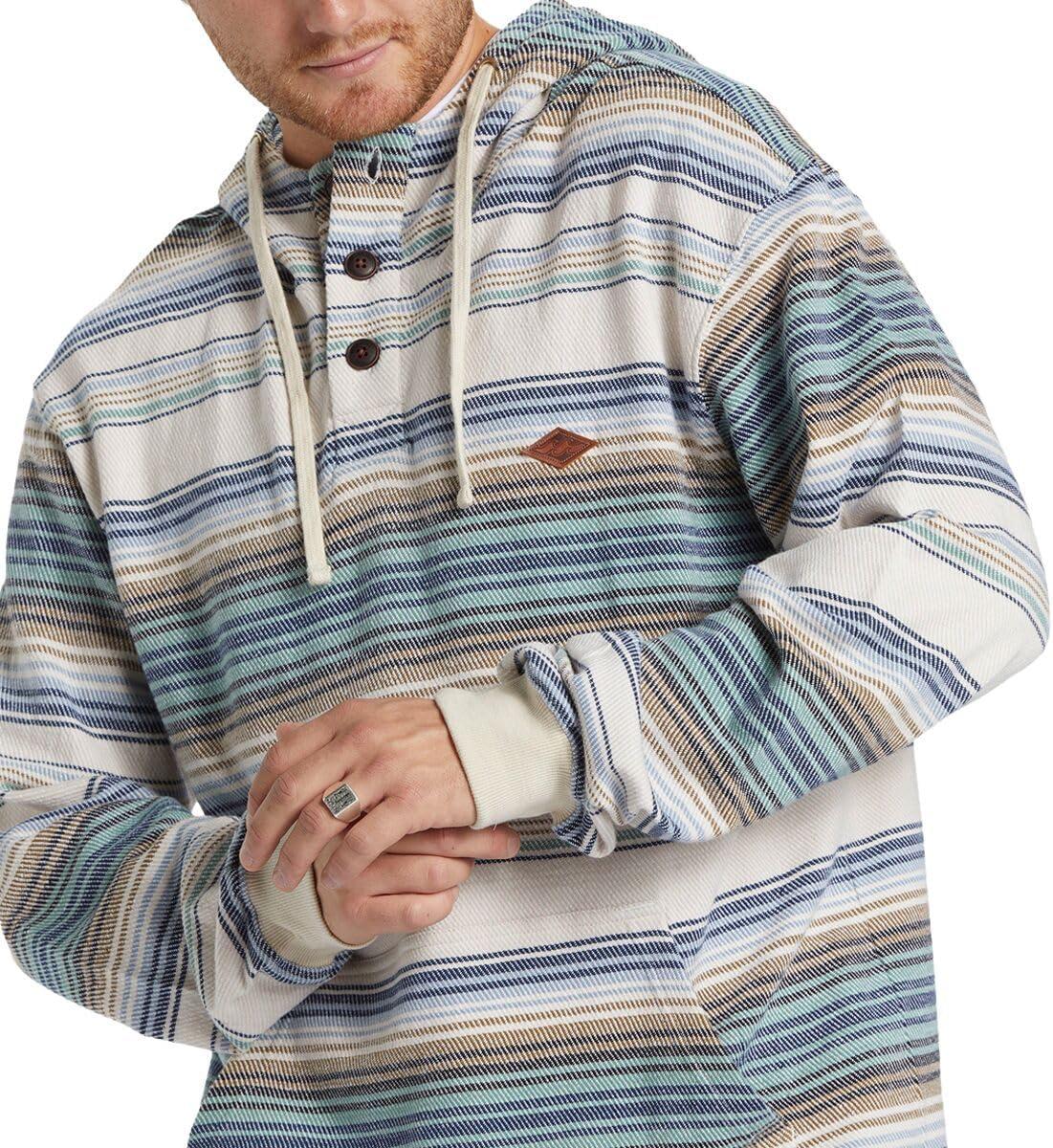 Billabong mens Rancho Henley Pullover Hooded Flannel(Sea Salt)