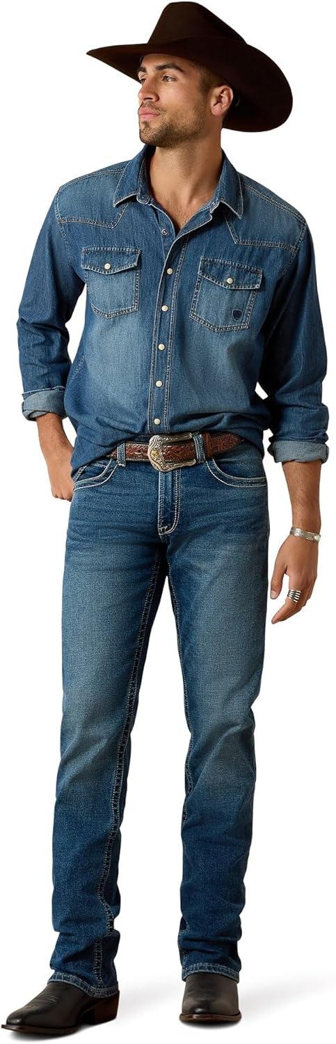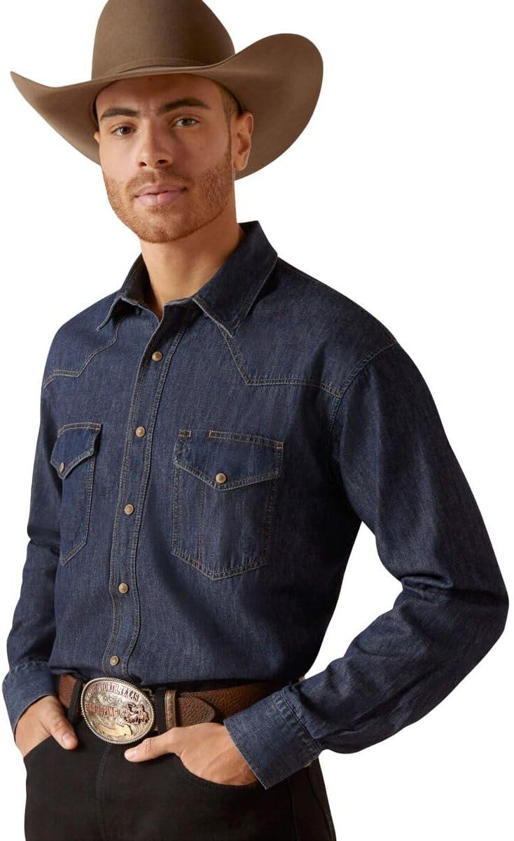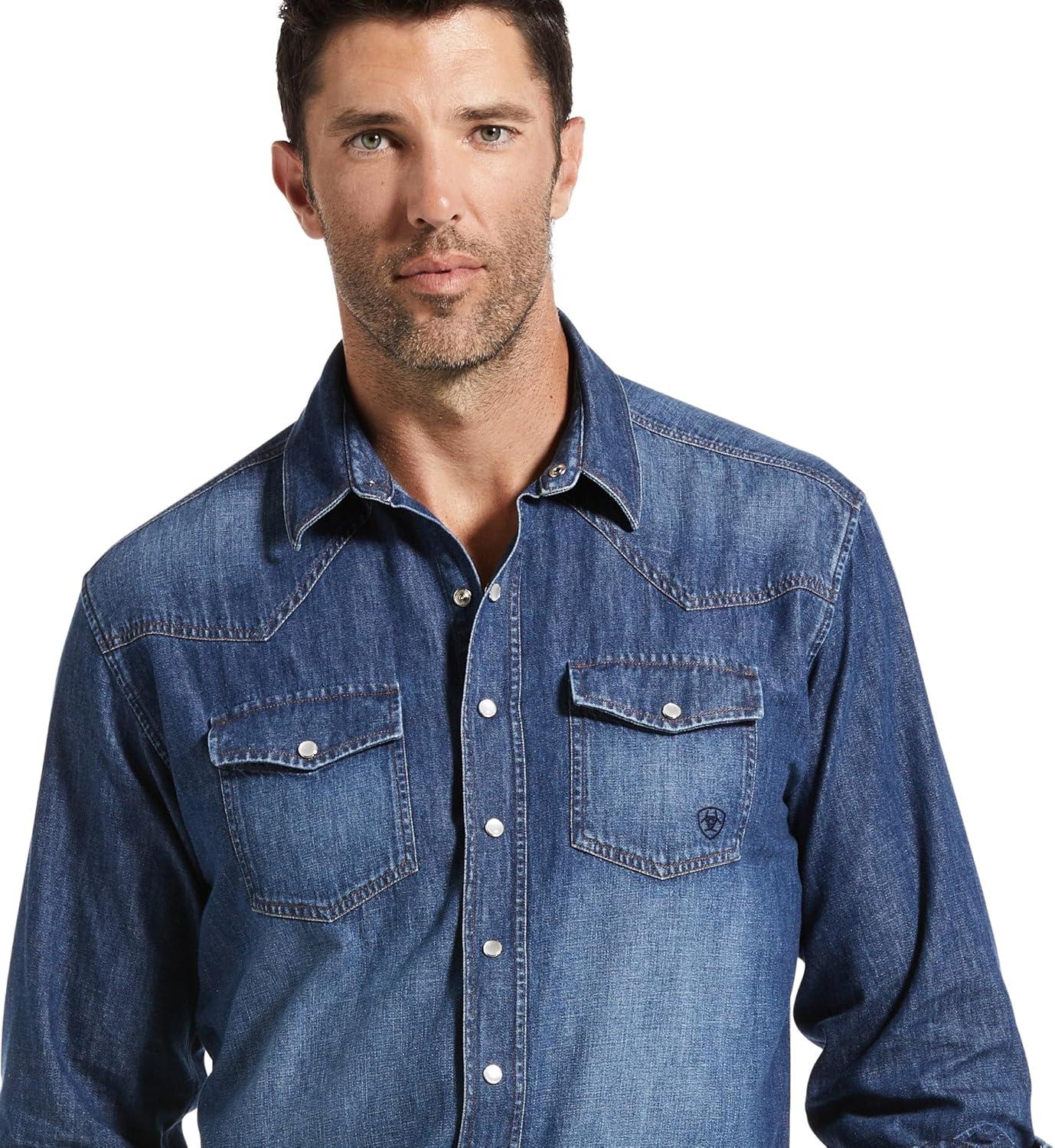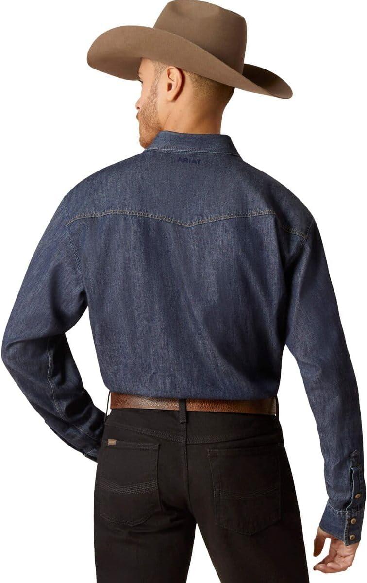 ARIAT Men’s Classic Long Sleeve Denim Snap Shirt – Broadway Blue(Broadway Blue)