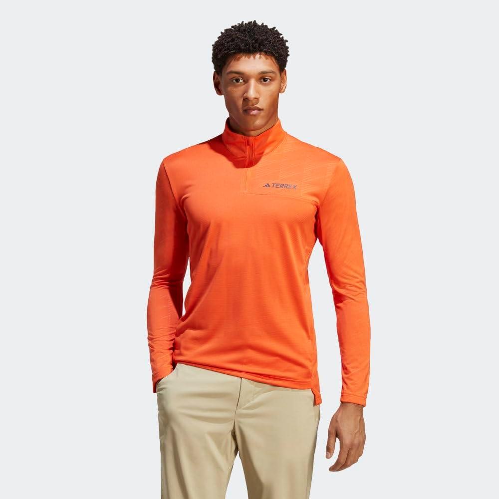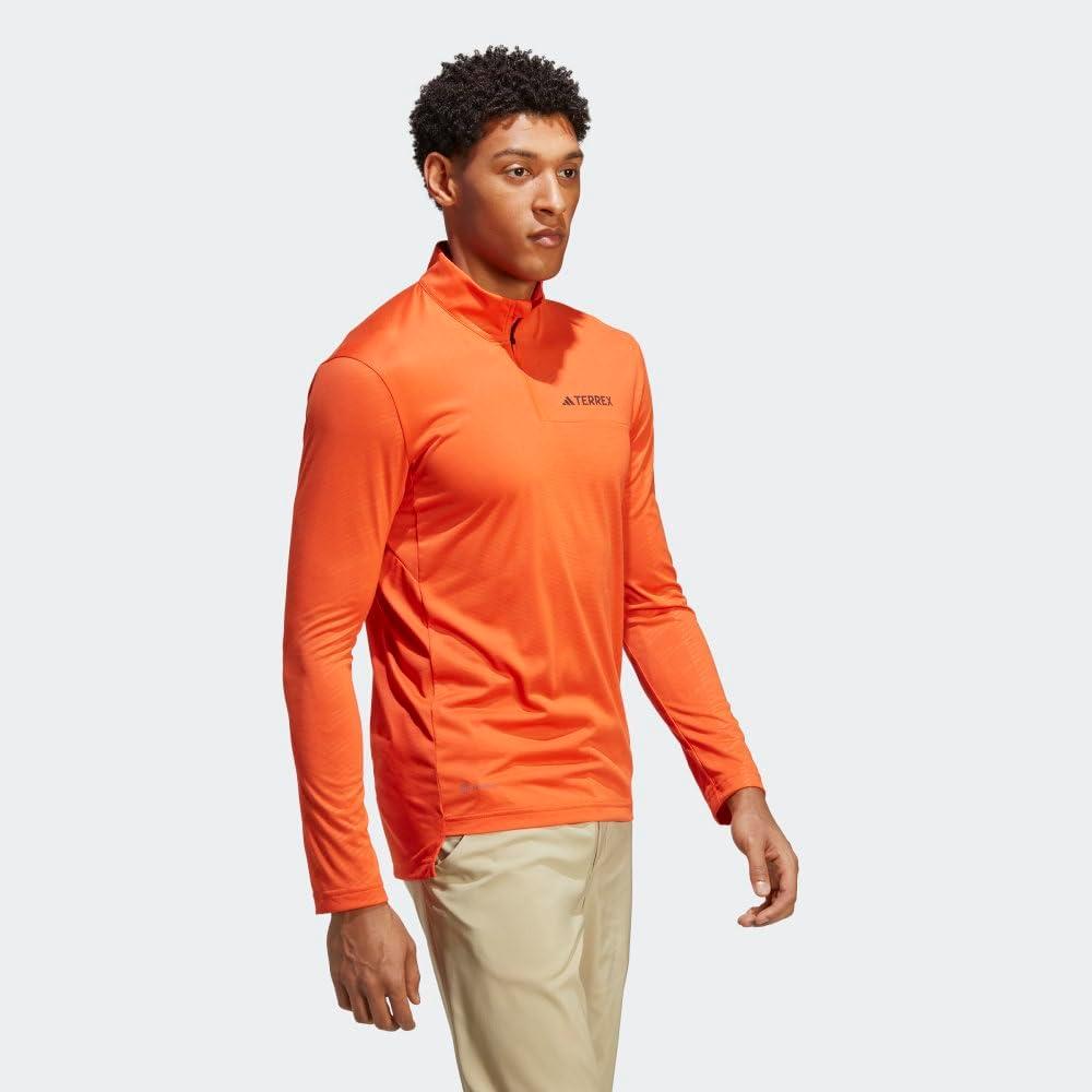 adidas Mens Terrex Multi Half-Zip Long Sleeve T-Shirt(Semi Impact Orange)
