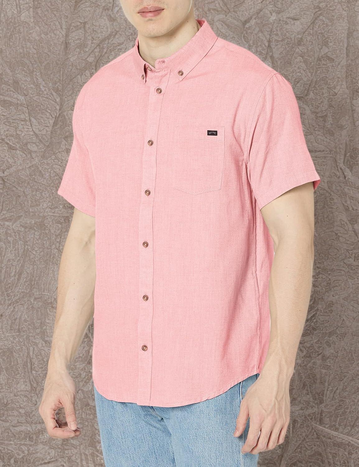 • Billabong Mens Classic Sundays Woven Short Sleeve Shirt(Faded Rose)