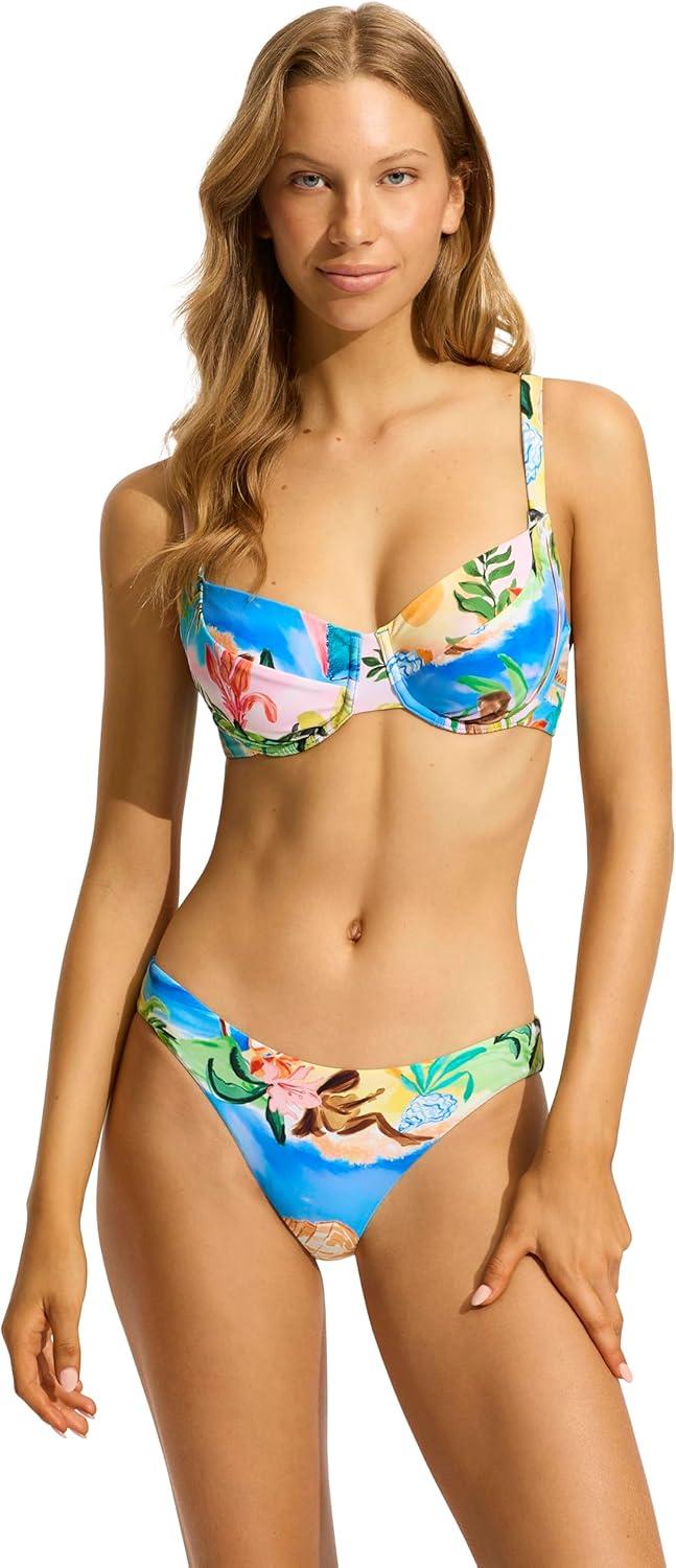 • Seafolly Women’s Standard Hipster Full Coverage Bikini Bottom Swimsuit(Sea Dive Wild Lime)