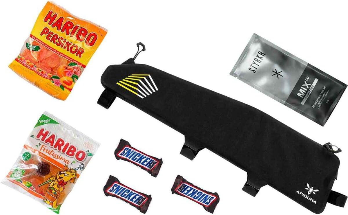 What Our Gearhead Experts Are Saying:”This top tube pack is ideal for those ultra-distance races when I need more storage without losing access to essentials. The fully waterproof two-way zipper is easy to use on the go, and the pack fits securely, so I don't have to worry about shifting. The cable port is also a great touch, allowing me to keep devices charged as I ride.”Engineered for ultra-distance races and intense bikepacking adventures, the Apidura Racing Long Top Tube Pack provides accessible storage for essentials like snacks, battery packs, and small tools. Crafted from Apidura's proprietary Hexalon waterproof laminate, this 2-liter pack keeps our belongings dry while remaining ultra-light and secure on the bike frame. Its fully waterproof two-way zipper and reinforced mounting straps ensure a snug, stable fit, even over rough terrain. Inside, the pack features a padded divider that allows for easy organization and protects electronics and fragile items. A protected cable port facilitates on-the-go charging, while high-contrast reflective graphics enhance visibility in all light conditions. This slim, thoughtfully designed top tube pack complements a full bikepacking setup, giving us the confidence to carry more essentials right at our fingertips.