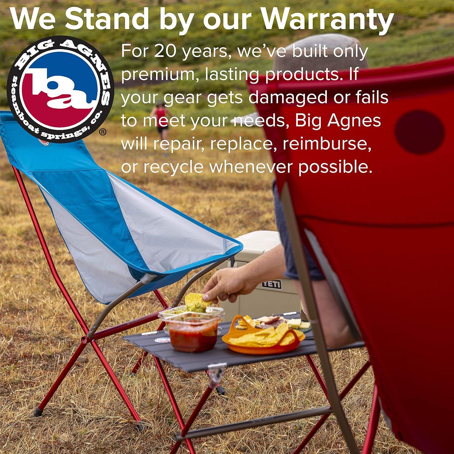Warranty Included – All Big Agnes products are 100% guaranteed against manufacturing or material defect; If one of our products does not perform to your satisfaction, Big Agnes will help you find gear that fits your needs