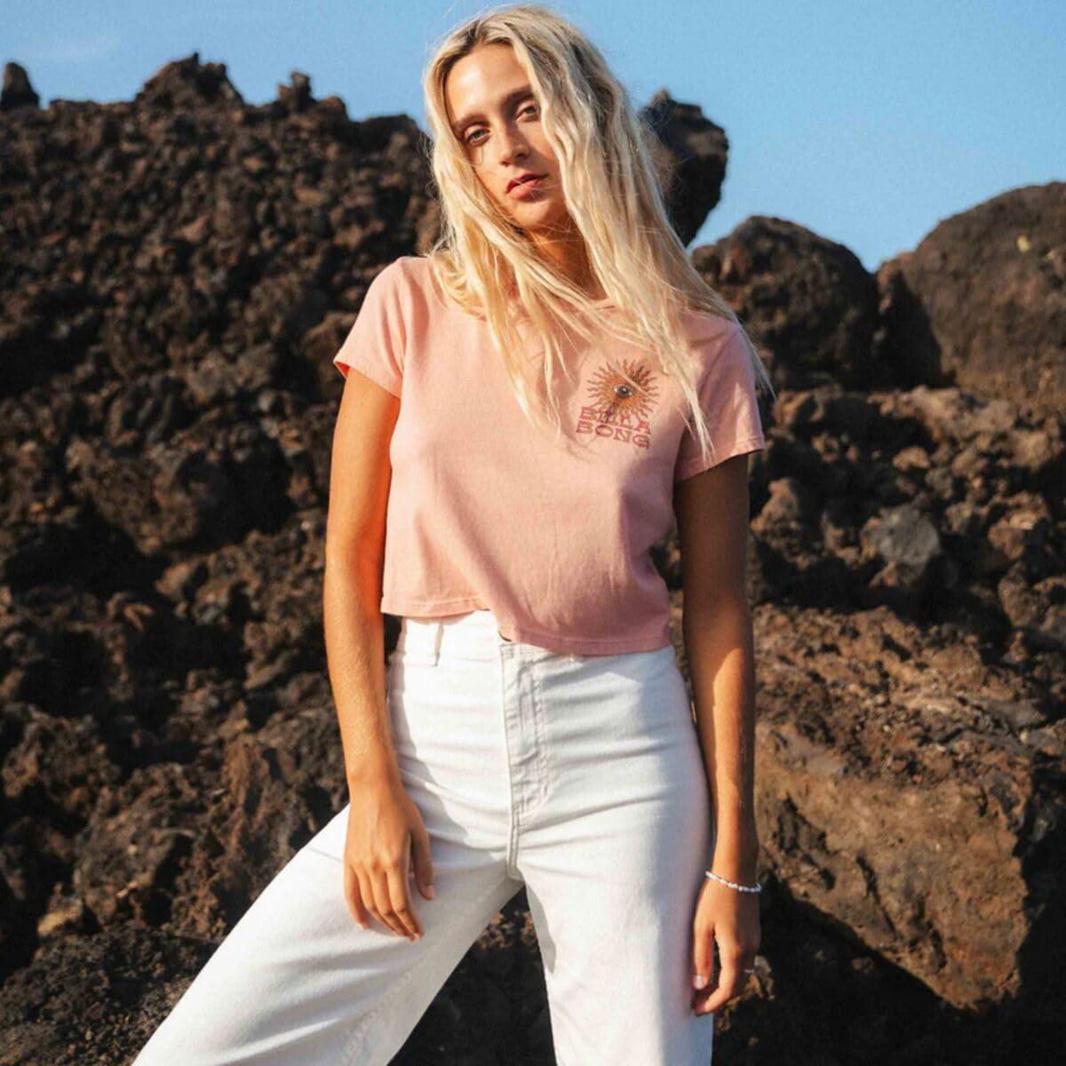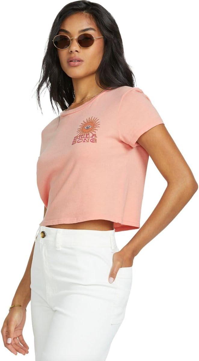 Billabong Women’s Logo Crop Short Sleeve Tee(Faded Rose)