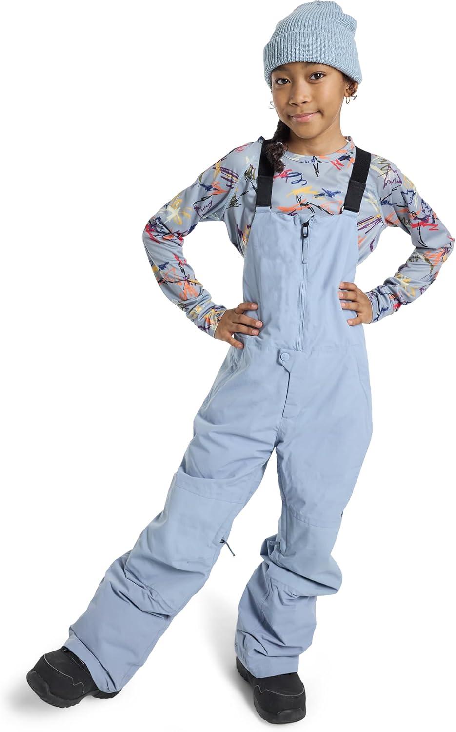 Burton Kids’ Skylar 2-Layer Bib Pants – Waterproof Winter Snowboard Bib Pants for Boys & Girls(Dusty Blue)