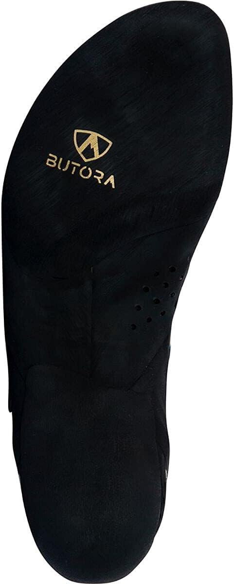 The Butora Acro is a cozy, downturned performance climbing shoe encased in our NEO Fuse sticky rubber, ideal for steep sport climbing and bouldering. It aids in comfortably conquering tough toe hooks, heel hooks, or anything in between right out of the box. Key features include Butora's own NEO Fuse Sticky Rubber, a custom ABS injected mid-sole maintaining downturn, a large thin sticky rubber toe patch for excellent sensitivity and grip during toe hooking, an adjustable signature triple fork closure system for quick on/off and perfect fit, and a new improved heel randing system with a 3D molded heel cup enhancing comfort and fit. It has been recognized as the best climbing gear by Rock and Ice.