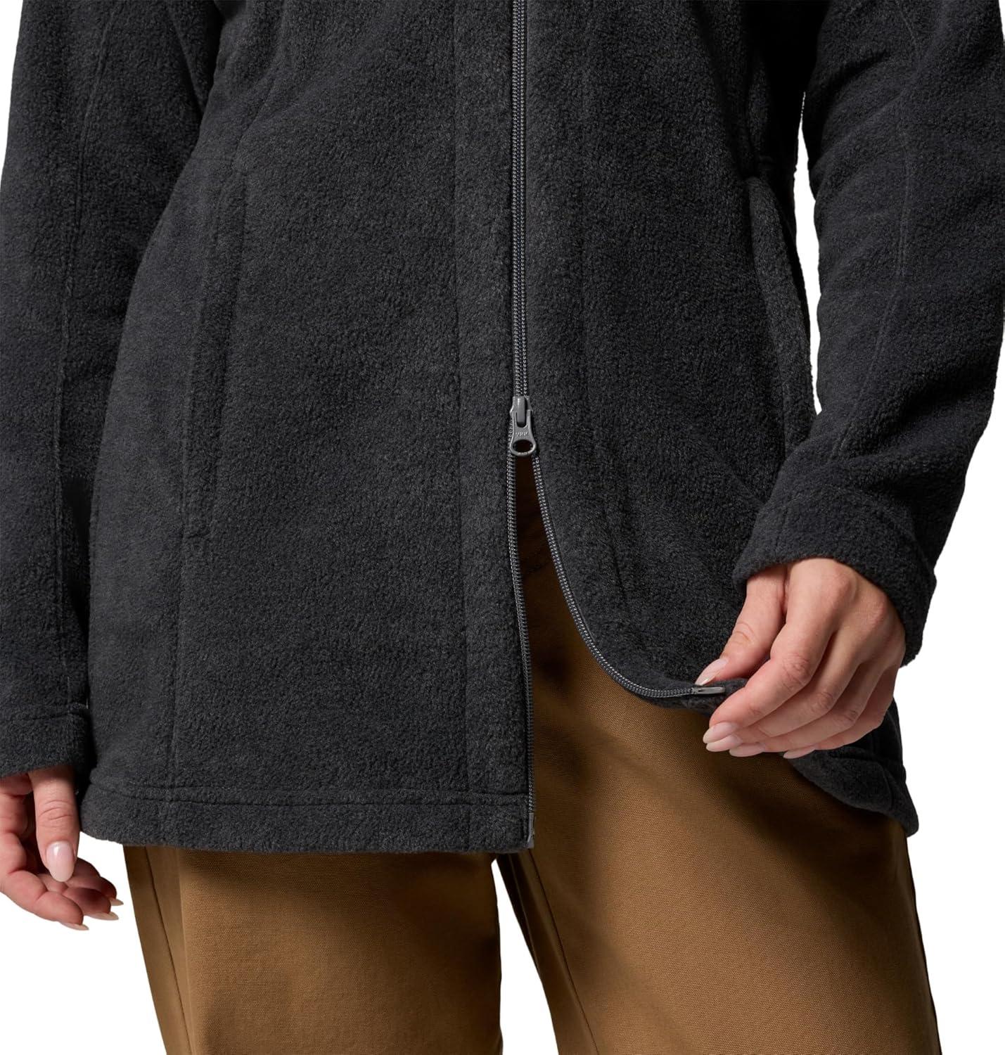 Wrap yourself in the ultimate cozy-chic warmth wearing the Columbia Benton Springs II Long Hoodie. This versatile fleece blends fashion with function, featuring a hooded neck, long sleeves, and a two-way zippered front closure for customized comfort. Keep your essentials secure in zippered hand pockets, while the longer hem provides extra coverage against the cold. Columbia elevates their classic Benton Springs fleece with added length and a hood, ensuring you stay stylishly snug no matter the weather