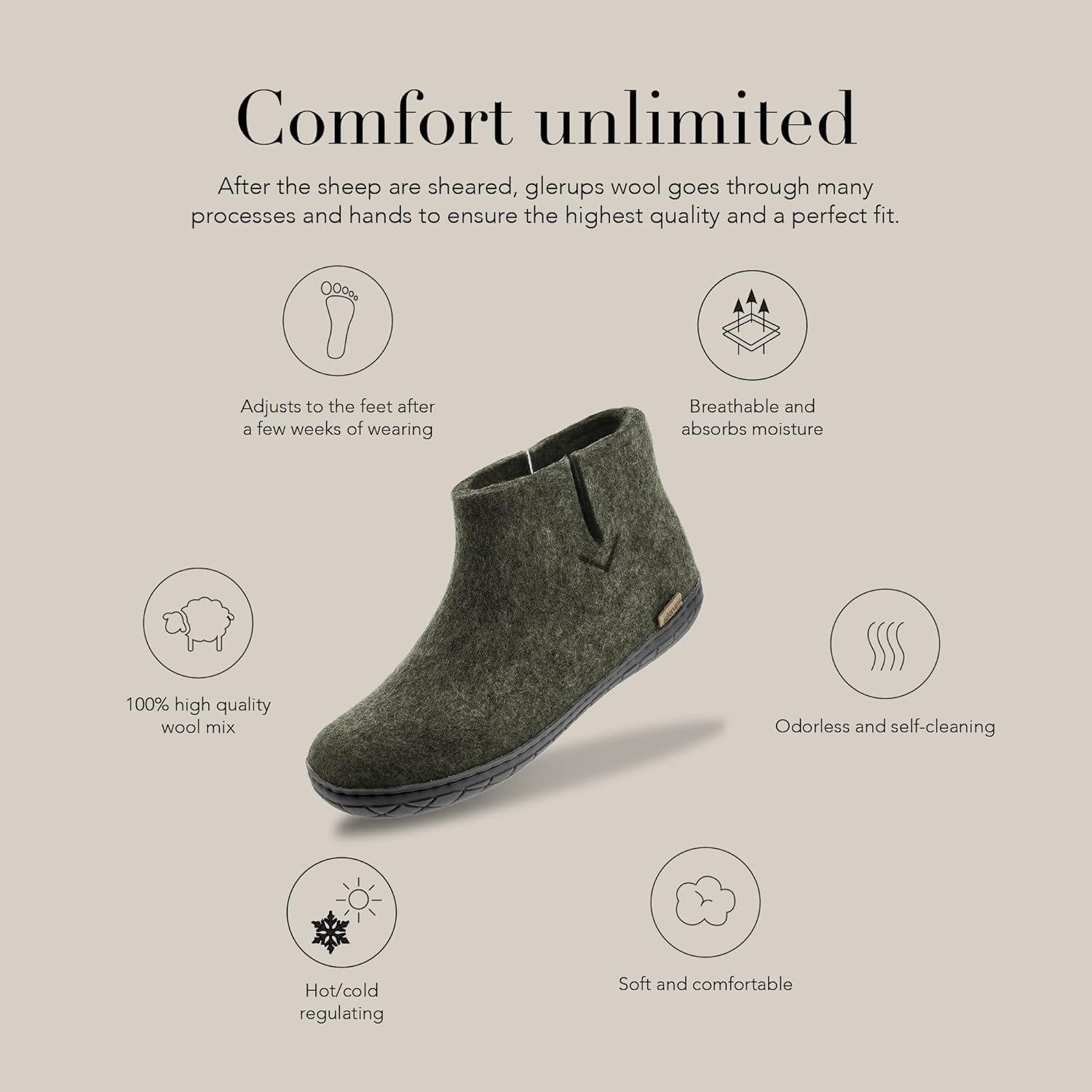 Glerups 100% quality wool mix Boot Slipper with rubber sole – Unisex(Forest (Black Rubber))