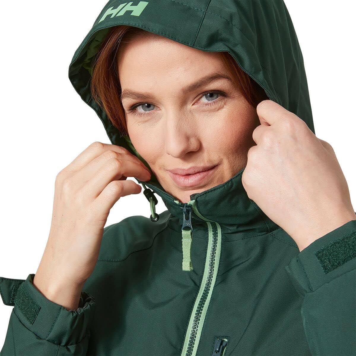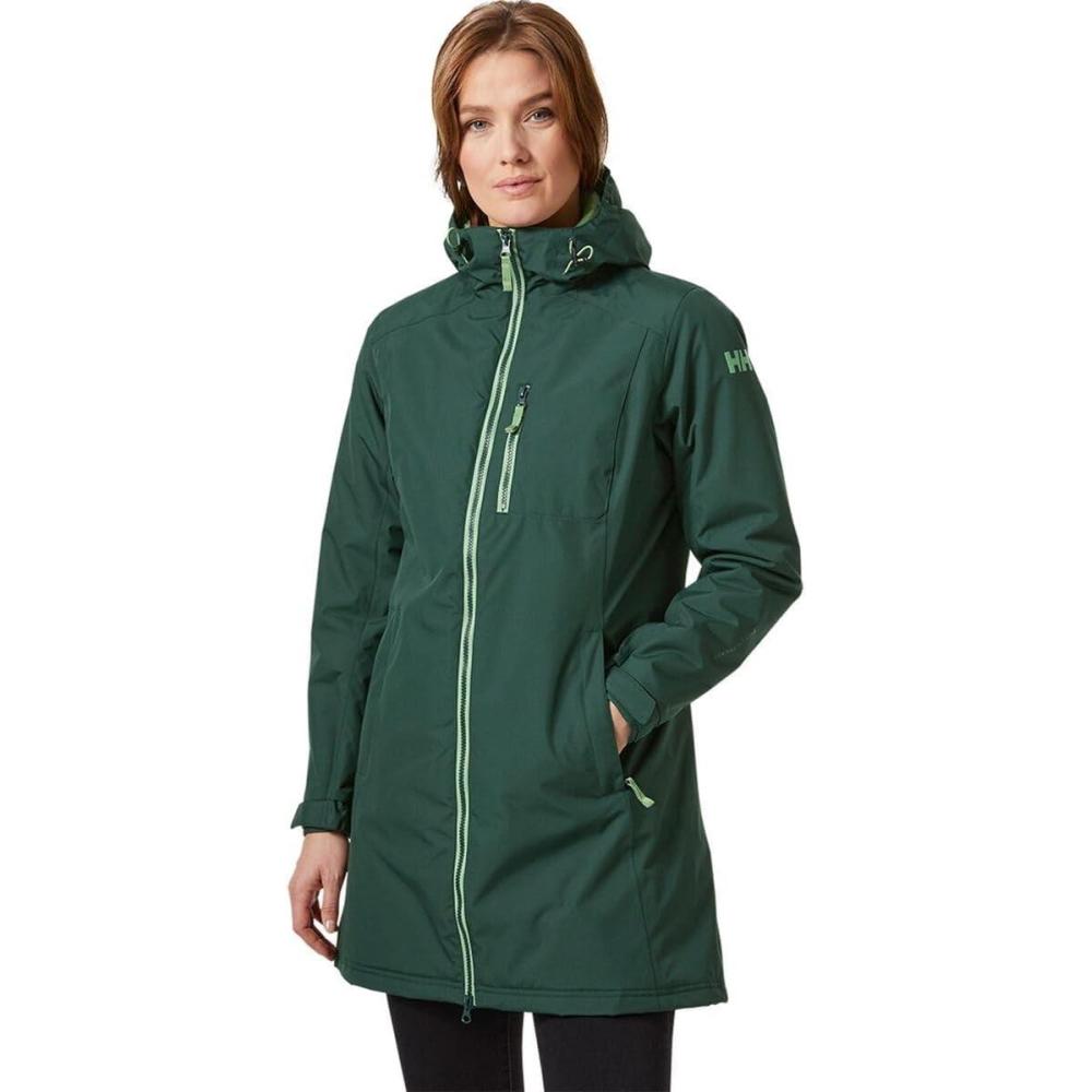 Helly Hansen Women’s Long Belfast Lightweight Waterproof Windproof Breathable Raincoat Jacket with Hood(495 Darkest Spruce)