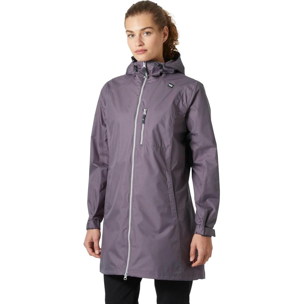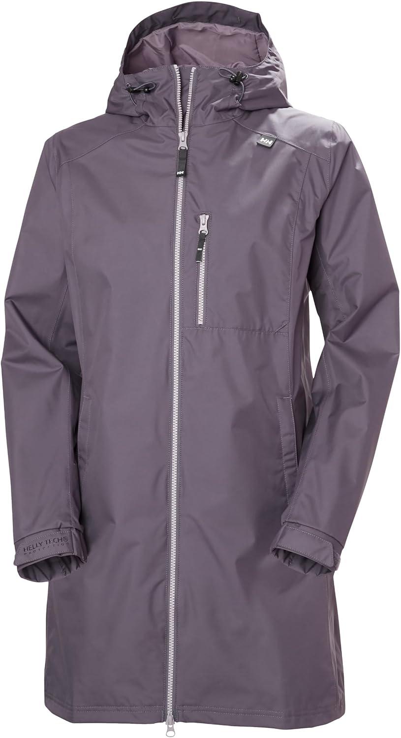 Helly Hansen Women’s Long Belfast Lightweight Waterproof Windproof Breathable Raincoat Jacket with Hood(654 Smoked Purple)