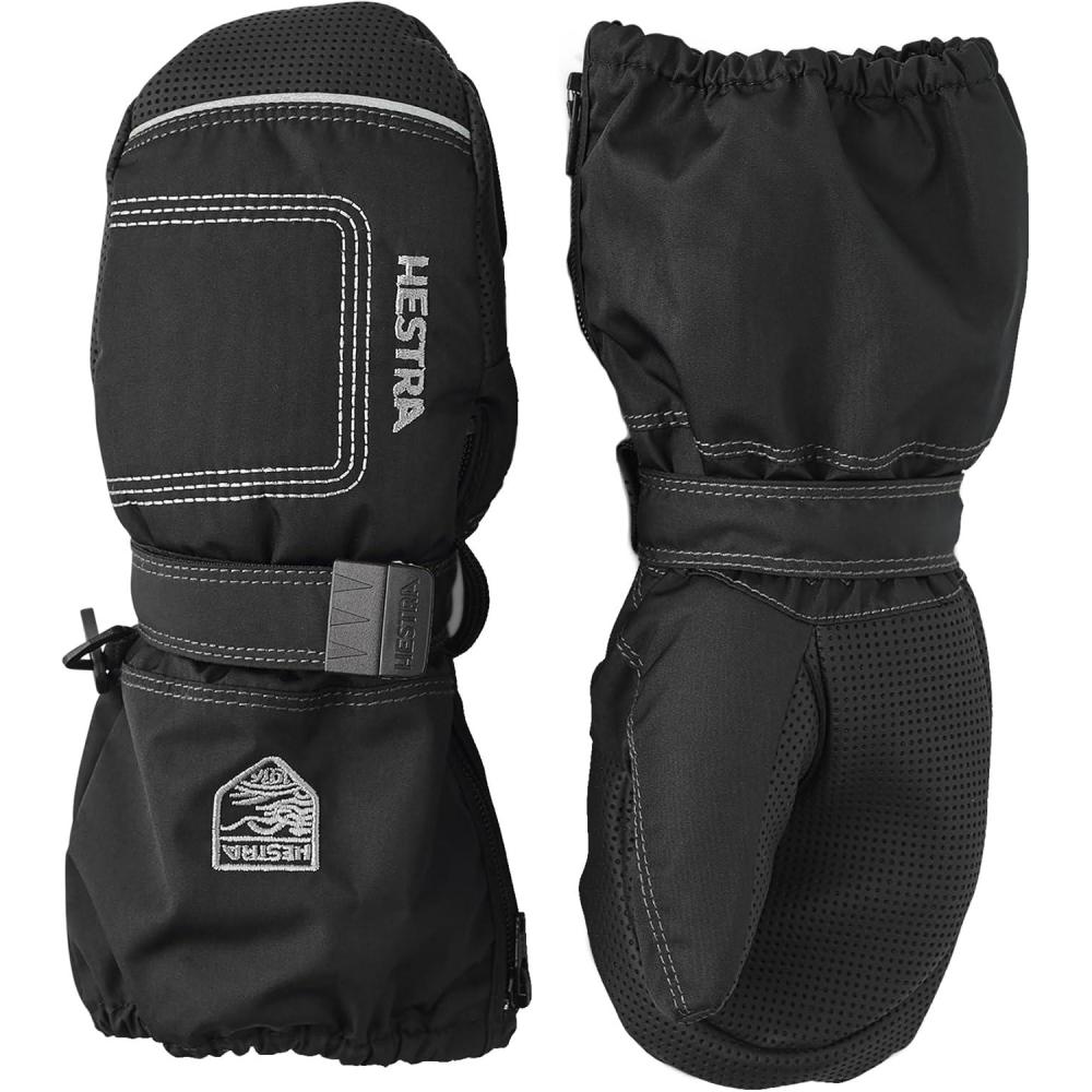 Hestra Baby Zip Long Mitt (Child 1-9yrs) | Waterproof, Insulated Mittens for Toddlers & Kids for Winter & Playing in The Snow(Black/Black)