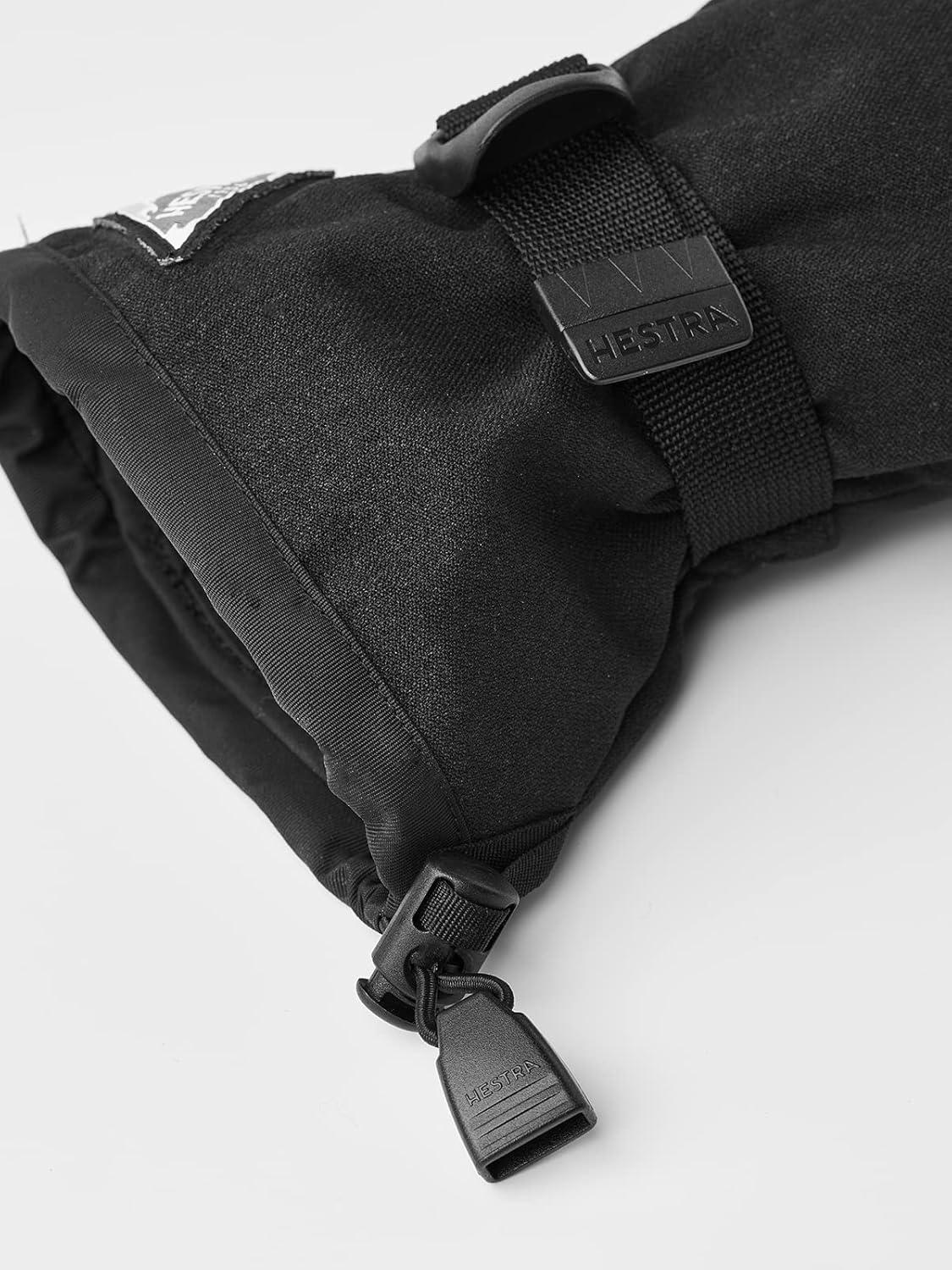 Hestra Unisex Powder Gauntlet Glove, Leather Windproof Insulated Glove for Alpine Ski, Everyday Winter Wear for Men & Women(Black)