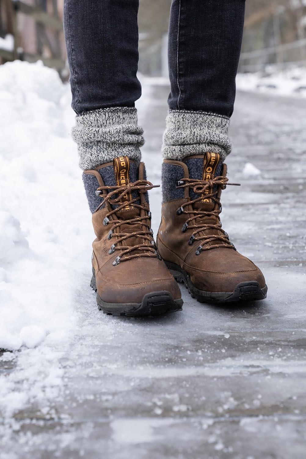 Icebug Womens Adak ReWool BUGrip Winter Hiking Boot with Carbide Studded Traction Sole(Coffee/Grey)
