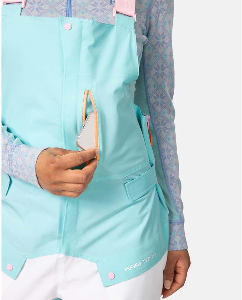All-day comfort, tons of storage, and protection against the elements all come to us in the Kari Traa Johanne Bib Pant. These stylish bibs' water-repellent polyester fabric is soft and pliant for active comfort, while the sealed seams keep snow, cold temps, and ice at bay. The two-toned color scheme brings us a unique, vibrant look, and multiple zippered pockets offer quick access to all of our on-hill essentials.