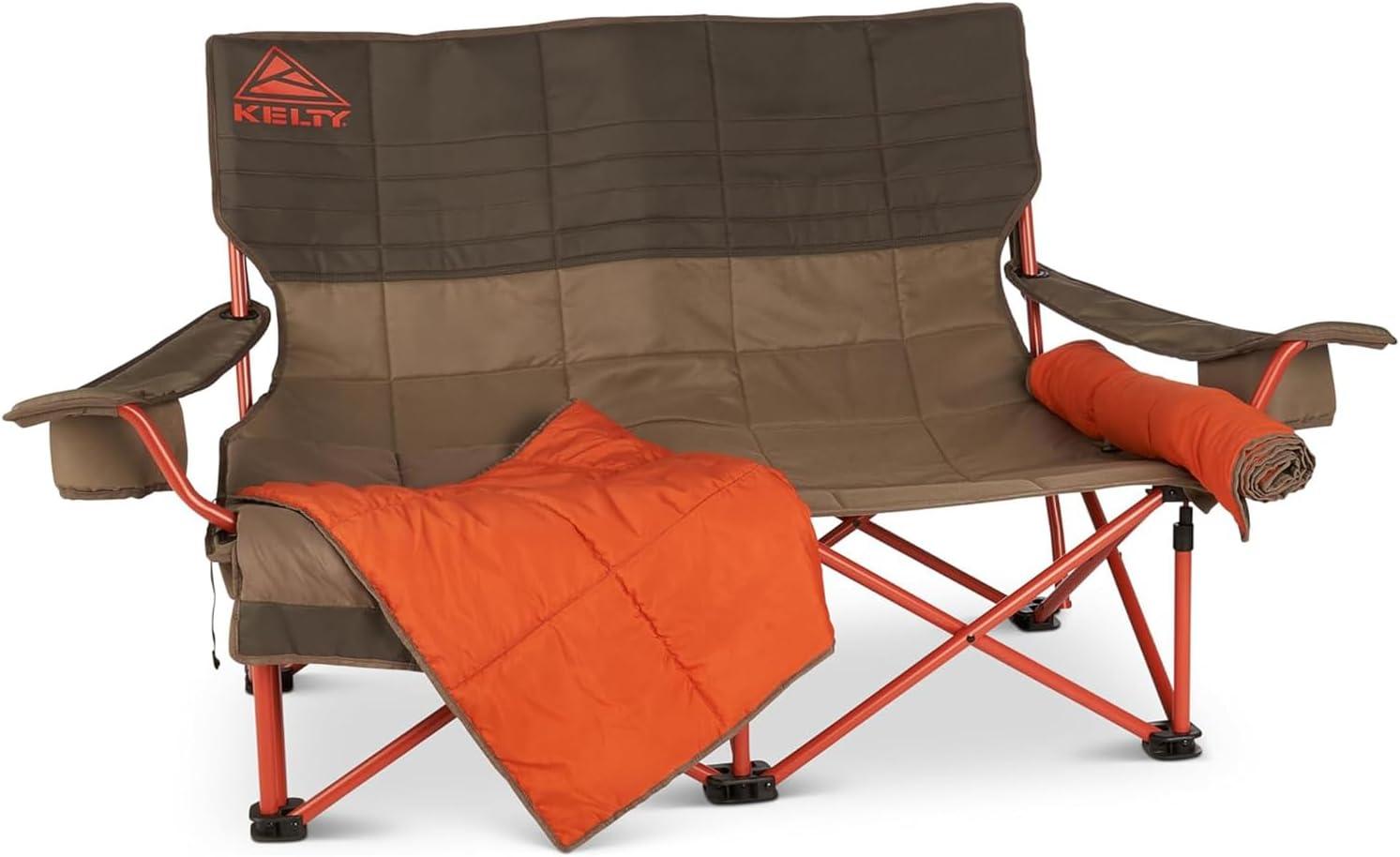 Kelty Low Loveseat Nest –Two Person Camping Chair with 2 Removable Blankets, Lower to The Ground, Slight Recline, Insulated Beverage Holders, Roll Tote Storage, 2024 (Beluga)