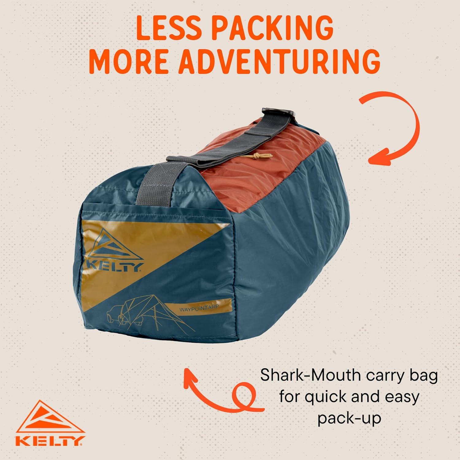 CAMPSITE HQ: Equally at home on the beach, at a festival, or at the campsite, The Kelty Waypoint Tarp stands ready to protect you, your friends and your gear. Over 120 Square feet of coverage from sun, rain, and wind