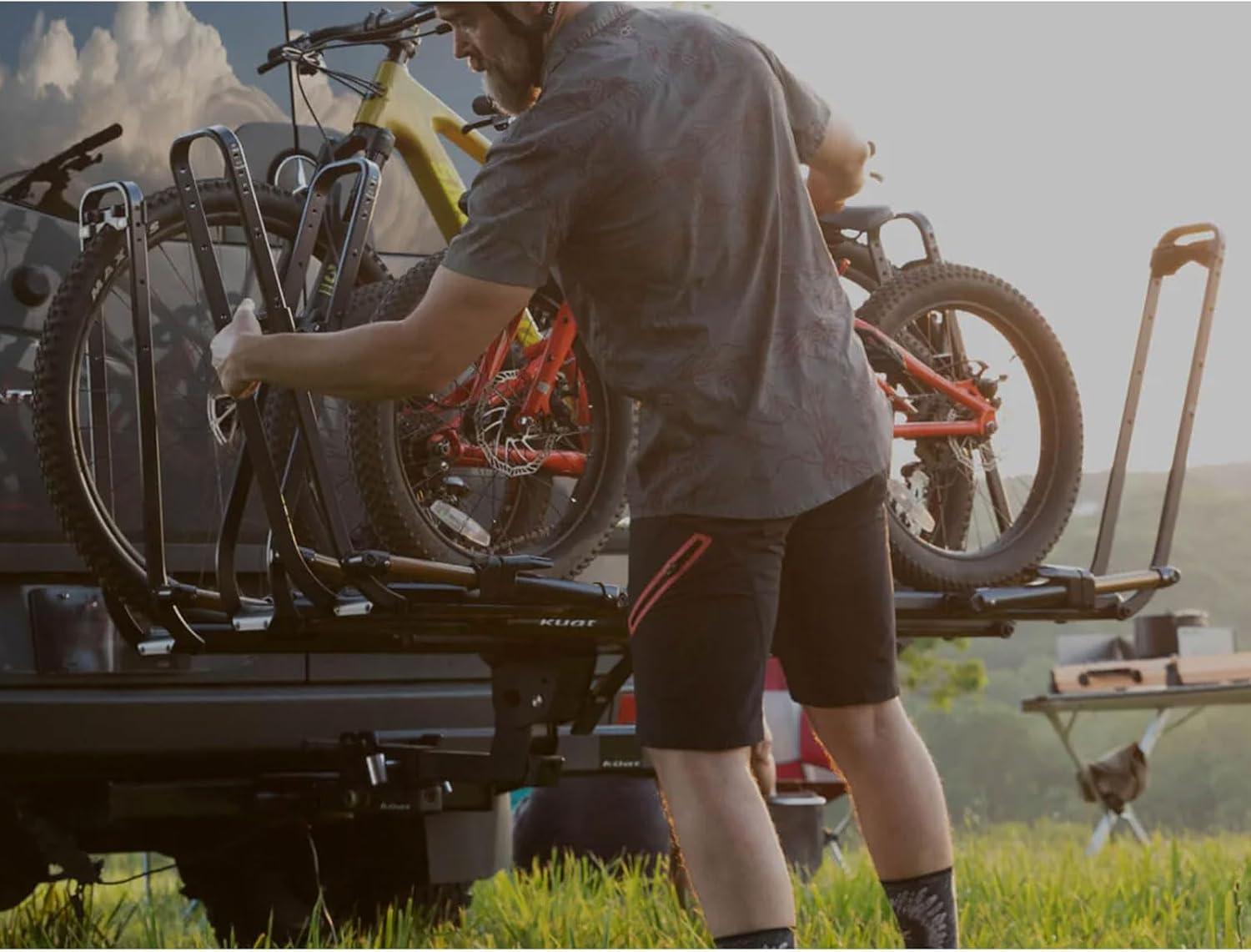EFFORTLESS LOADING – This Kuat rack expansion kit features patented OneTap hydro-pneumatic levers for effortless bike loading; Simply tap the lever, and watch as the cradle arms automatically open into the perfect position to secure your bikes; This design not only streamlines the loading process but also adds an element of enjoyment to preparing for your ride