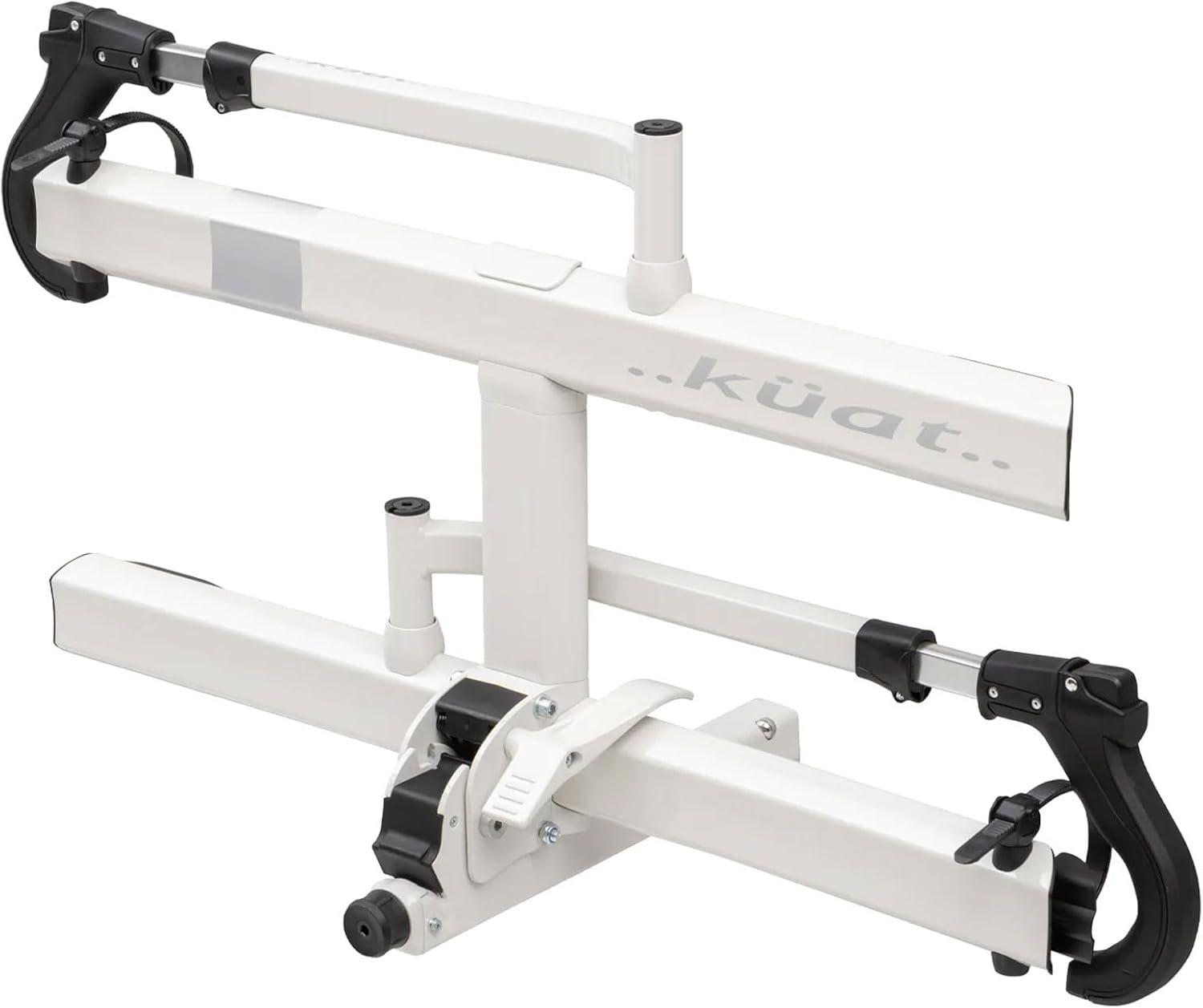 KUAT Sherpa 2.0 Durable Lightweight Aluminum Compact 2 Bike Transporting Hitch Rack with Cable Lock & Foldable Tire Cradles | Capacity – 40 Lbs per Tray(Pearl & Silver Anodize)