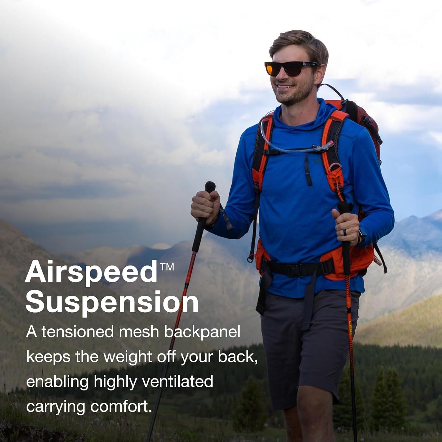 AirSpeed Suspension – A tensioned mesh backpanel keeps the weight off your back, enabling highly ventilated carrying comfort