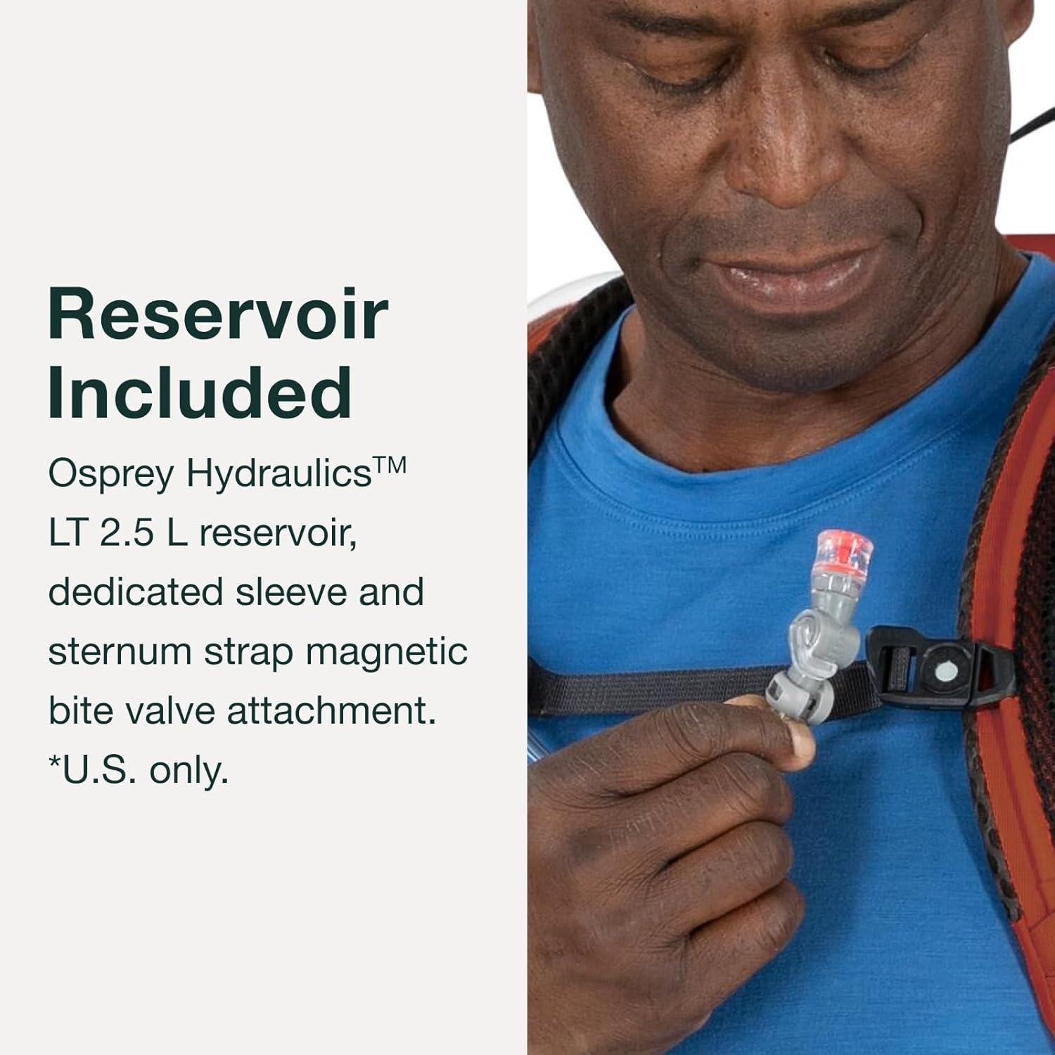 Reservoir Included – Comes with an Osprey Hydraulicsâ„ LT 2.5 L reservoir, dedicated sleeve and sternum strap magnetic bite valve attachment
