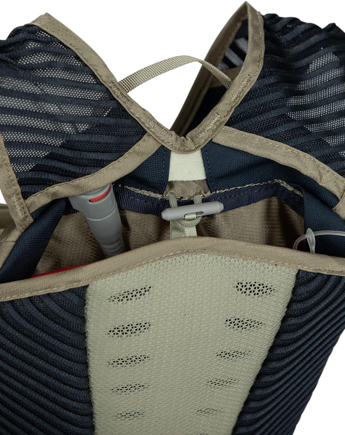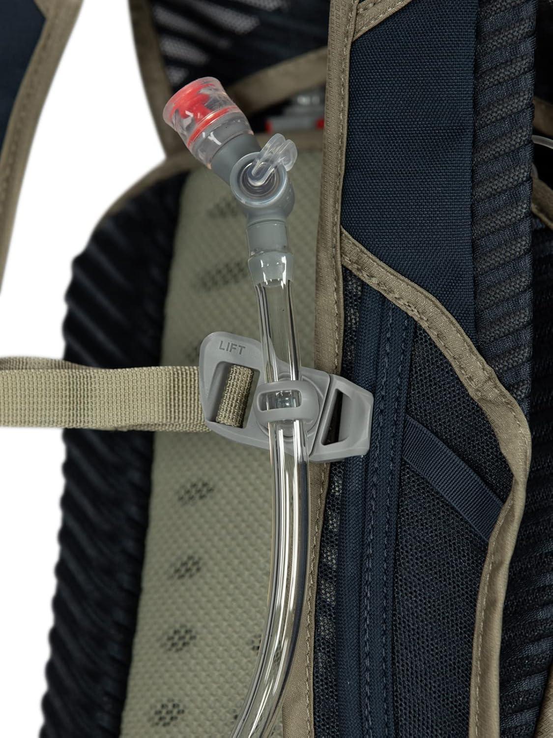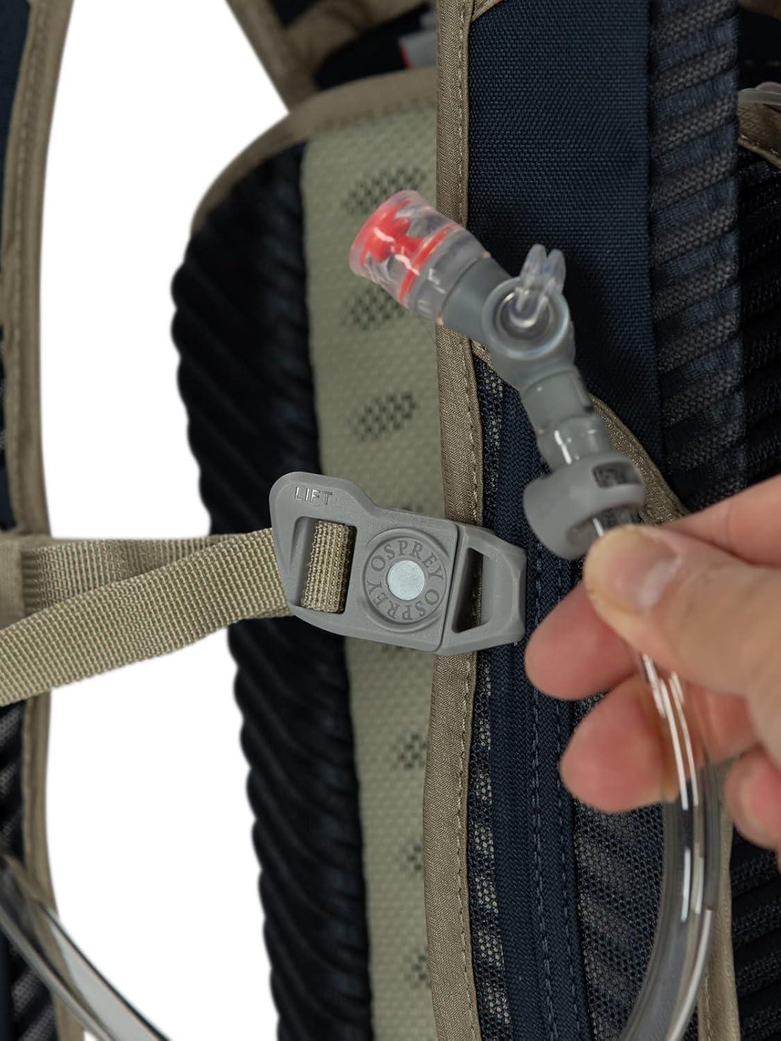 Comes ready for riding with an Osprey Hydraulics LT reservoir and sternum strap magnetic bite valve attachment.