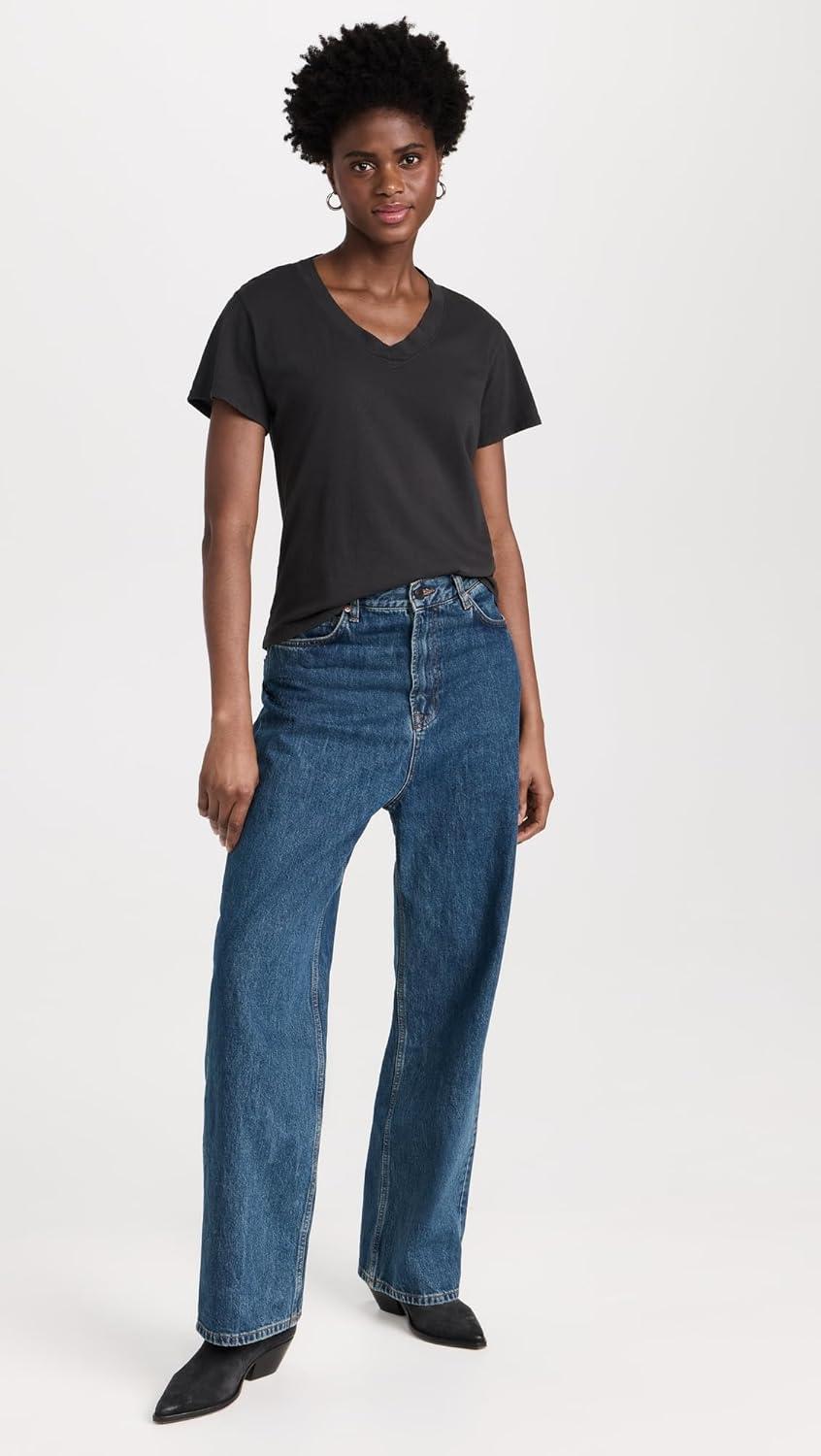 perfectwhitetee Women’s Hendrix Cotton Boxy V Neck Tee(Vintage Black)