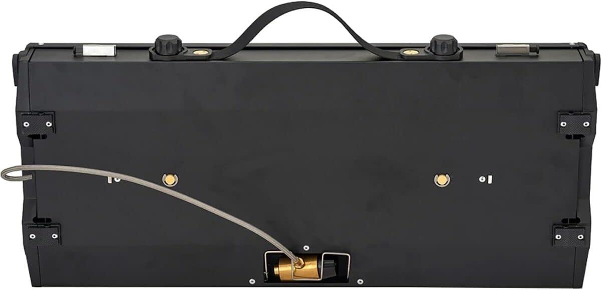 Two unique sized burners provide different flame options, allowing you to cook multiple pots or pans at different temperatures; Piezo ignition, no lighter required; weight: 10.4lb | open dimensions: 11.2 x 23.9 x 10.7” | closed dimensions: 3.2 x 23.9 x 10.7″ | output: 10,000 BTU & 13,300 BTU | feeds: 10