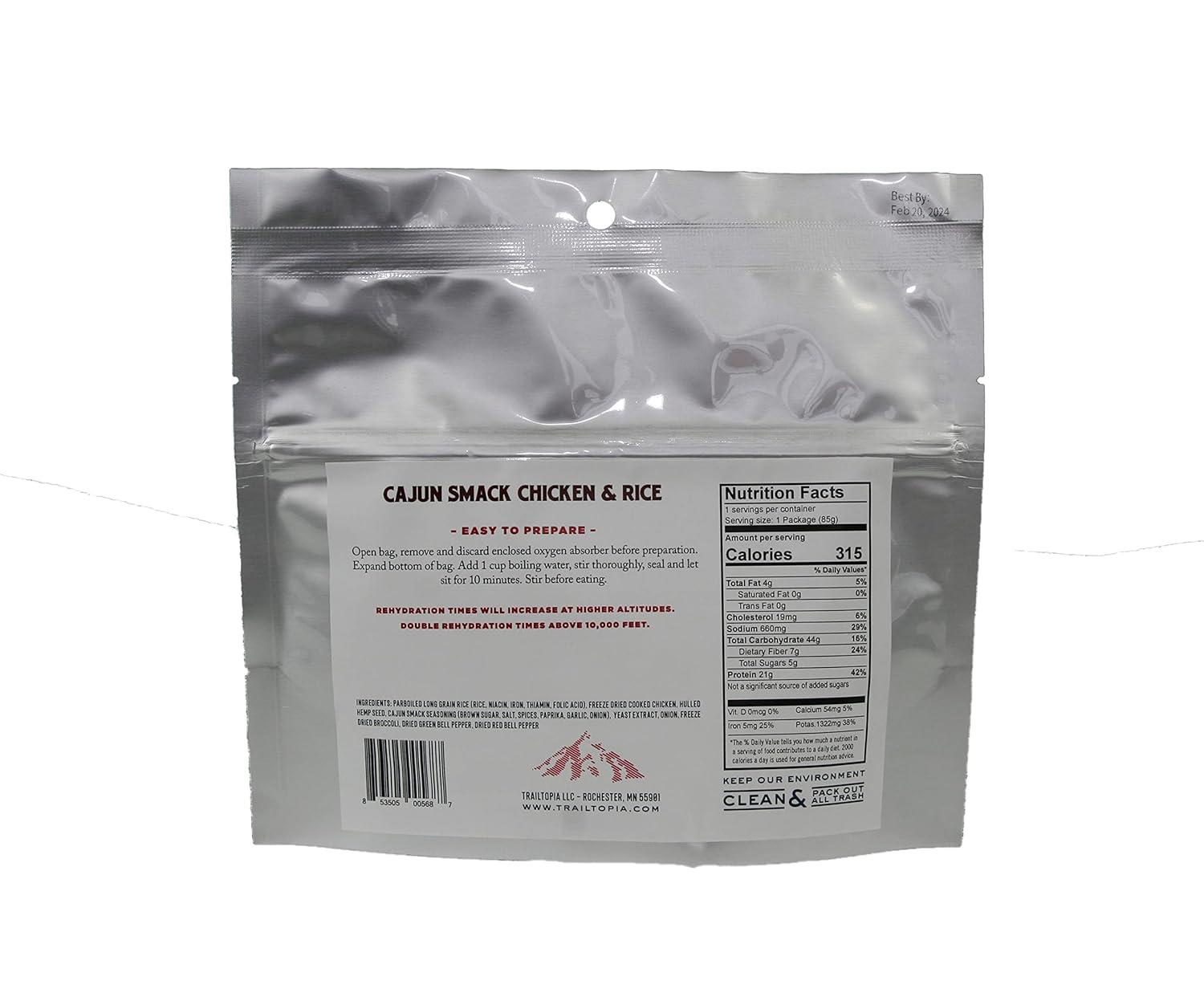 Trailtopia Chicken Stew with Noodles – Freeze Dried Hiking Dinner | Delicious Taste | Quick & Easy Prep | Lightweight | Perfect for Camping & Backpacking | High Energy Meals for Outdoor Adventures(Cajun Smack Chicken & Rice)